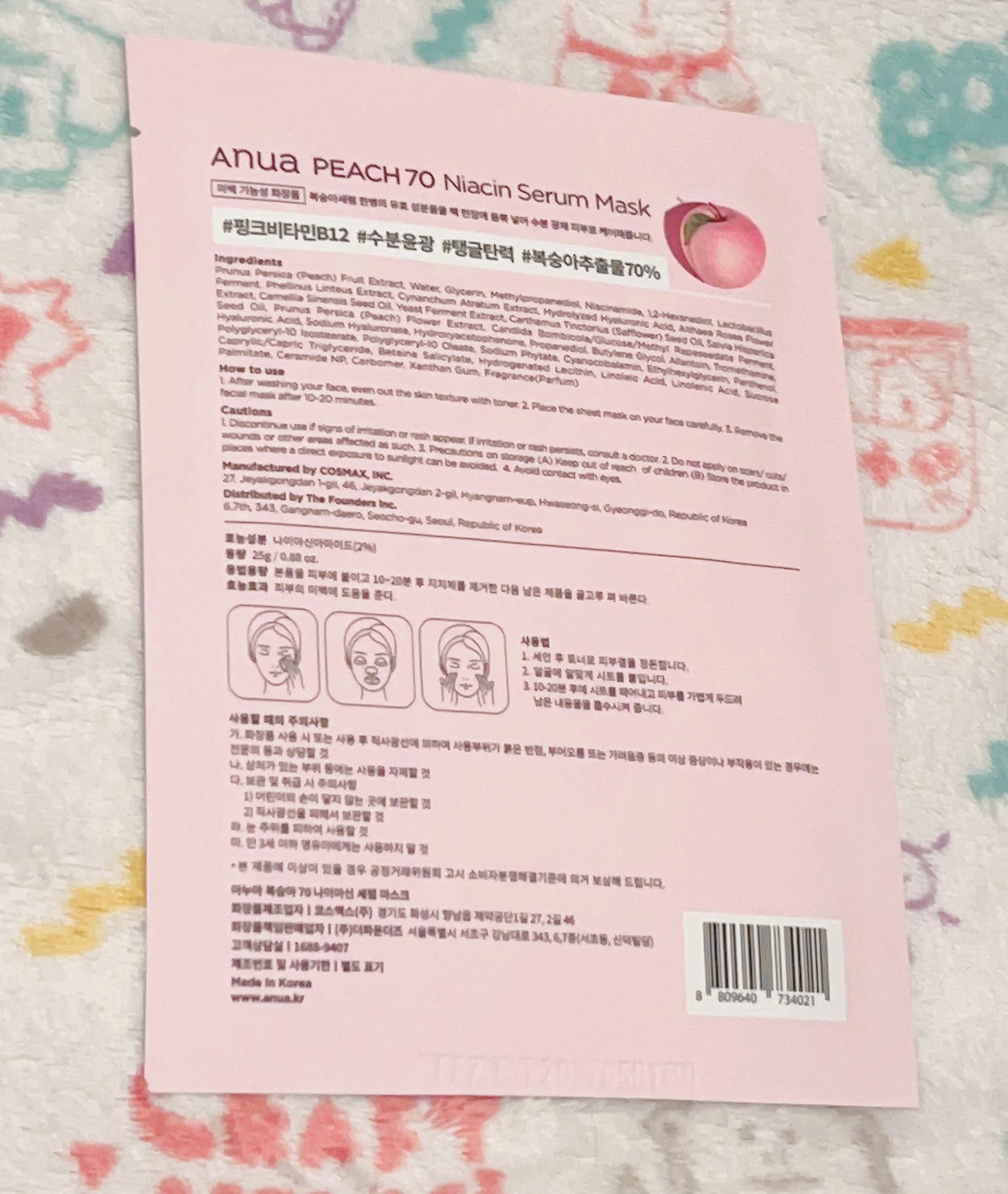 商品詳細情報Anua 桃70%ナイアシンシートマスク