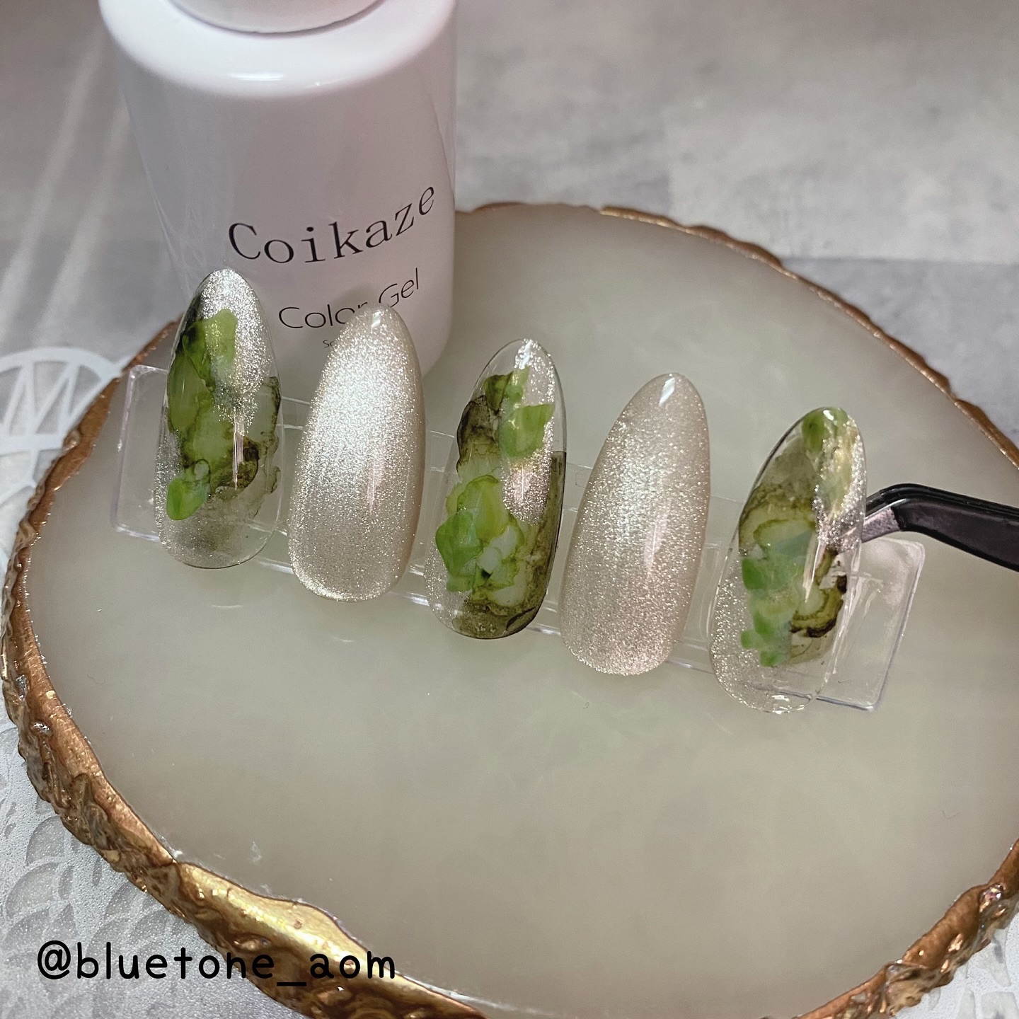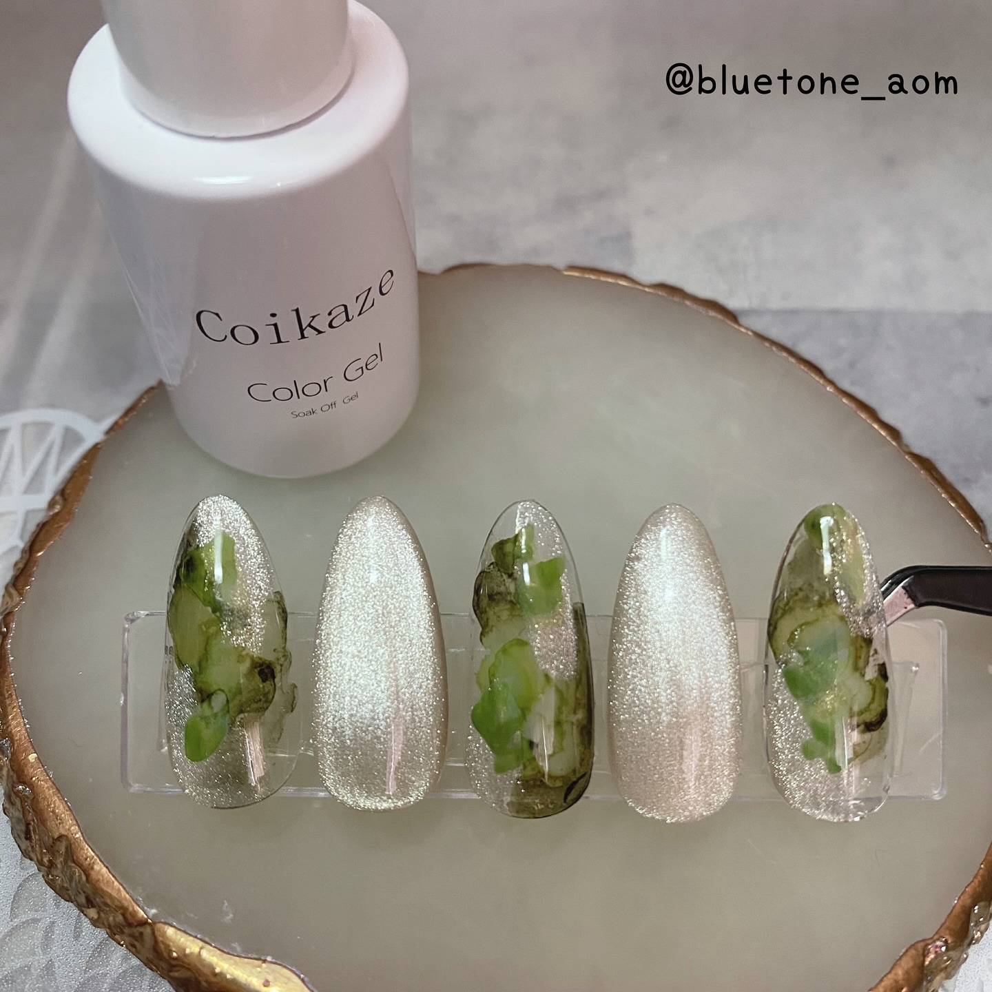ベースカラーを塗ったらノンワイプトップを塗って硬化します。 クリア→ミラー感はあるけど、発色はそこまで濃くないのでガッツリシルバーを求めてる人は物足りないかも🤔 ホワイト→キレイにシルバーになりました! ミルキーホワイト→シャンパンゴールドみたいな落ち着いたゴールドっぽくなりました😳 ブラック→キレイにシルバーに!やっぱりブラックとシルバーは映えますね🤝ギラギラです! パウダーの粒子はちょっと大きめなのでちょっと不安でしたが擦ってみるとキレイにミラーになりました! ベースカラーで見え方も変わるので色々試しても面白いかもです🥰
