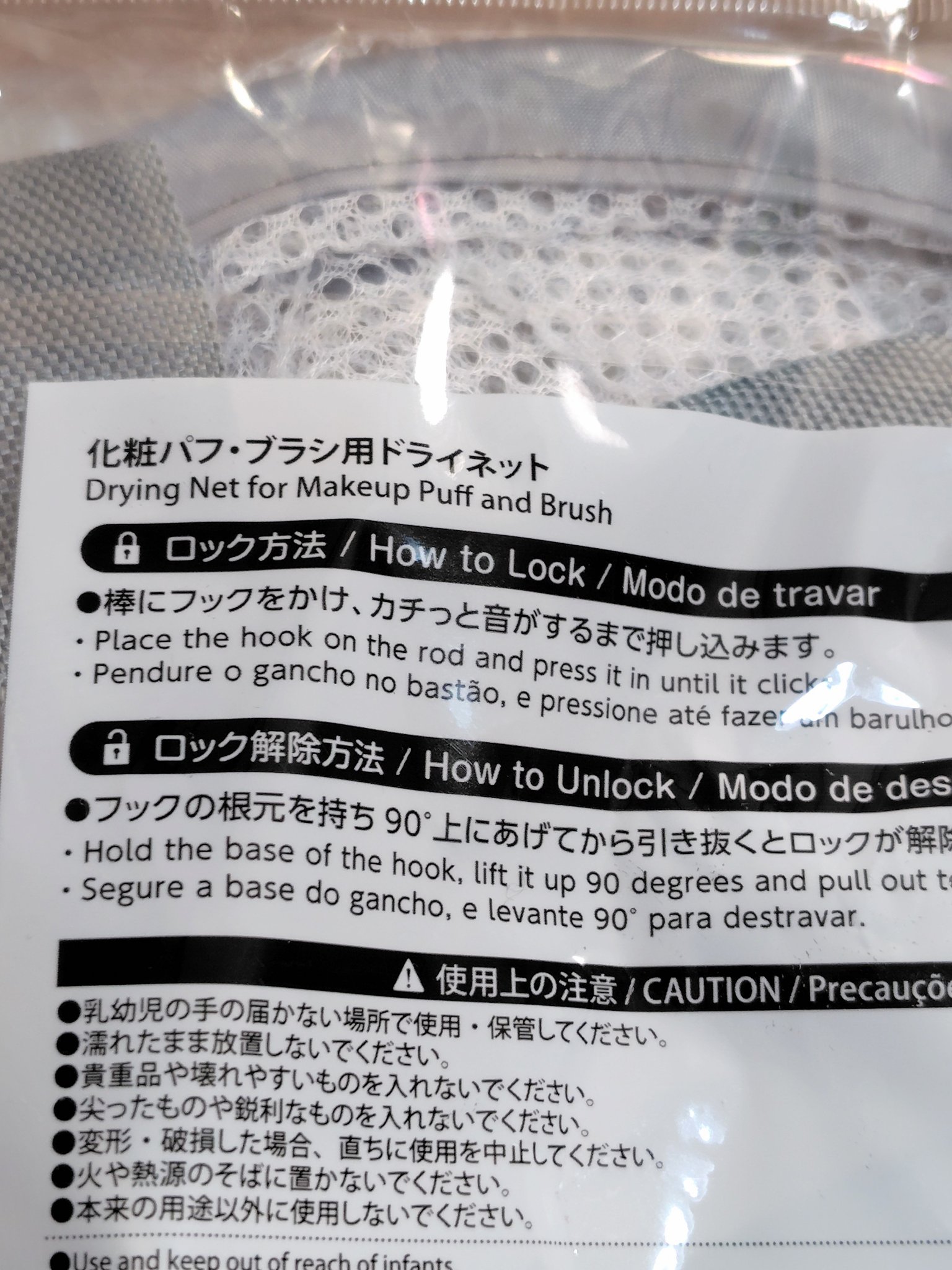 DAISOで便利アイテムを発見!DAISO化粧パフ・ブラシ用ドライネットフック付きで、化粧パフやブラシを入れて乾かせるドライネット✨棒などにかけられるので、衛生的で嬉しいです!洗面台や机に置いてメイクスポンジを乾かすと、子供がどうしてもいじる...