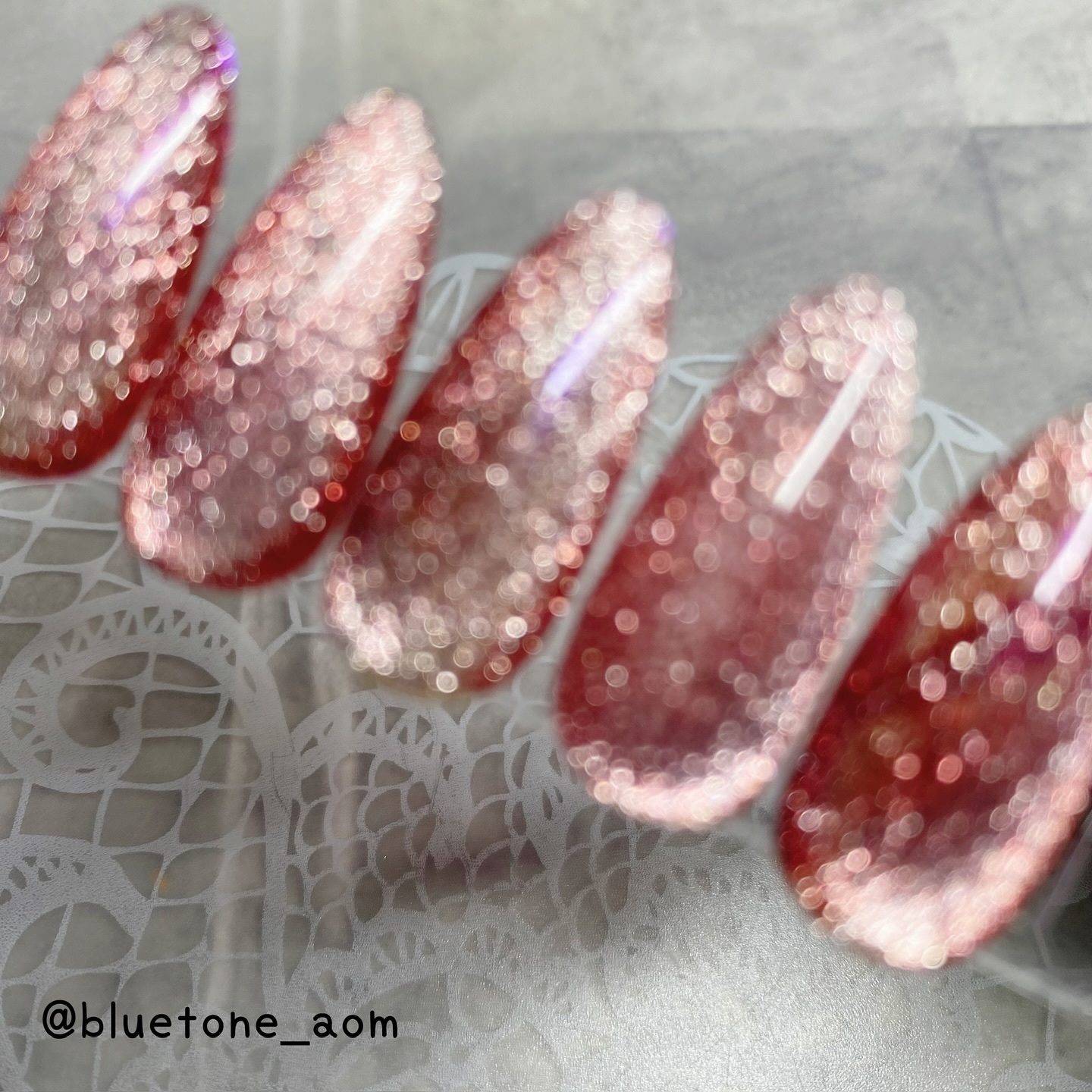 ラメがしっかりしてるし クリアカラーが入ってるから オーロラパウダー無しでも 充分キラキラしました! 反射強めのフィルムなので 実物はもっと うるうるとキラキラが強いです! ビー玉みたい🥺 ネイルシール長持ちさせたいけど ちょっと飽きてきたな〜って時とかに 全然違った印象になるのでオススメです! Seriaのベースジェル 本当にうるうるネイルしやすいので オススメしたい🙆♀️