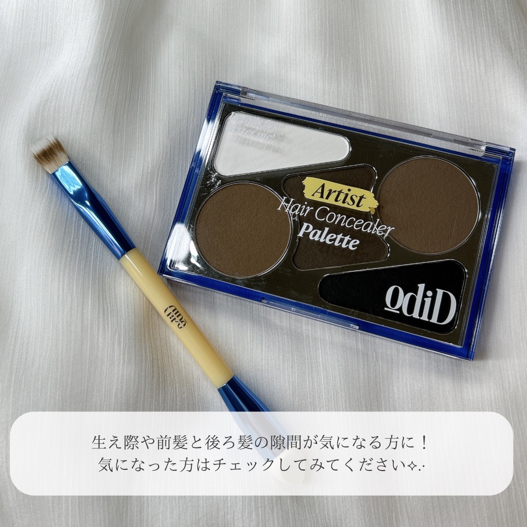 頭頂部や生え際を自然にカバーしてくれる、ヘアコンシーラーパレット🎨 カラーはふにっと跡が残るしっとりテクスチャー。程よい発色感で、ナチュラルにさらっと密着してくれます。 髪や肌に合ったカラーを作れるので、違和感なく自然にカバー。グラデーションも作りやすく、思い切って塗っても失敗しにくいように感じます。