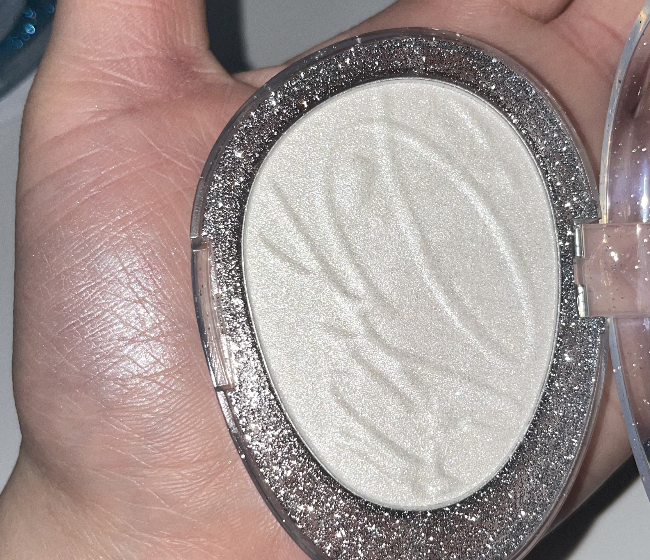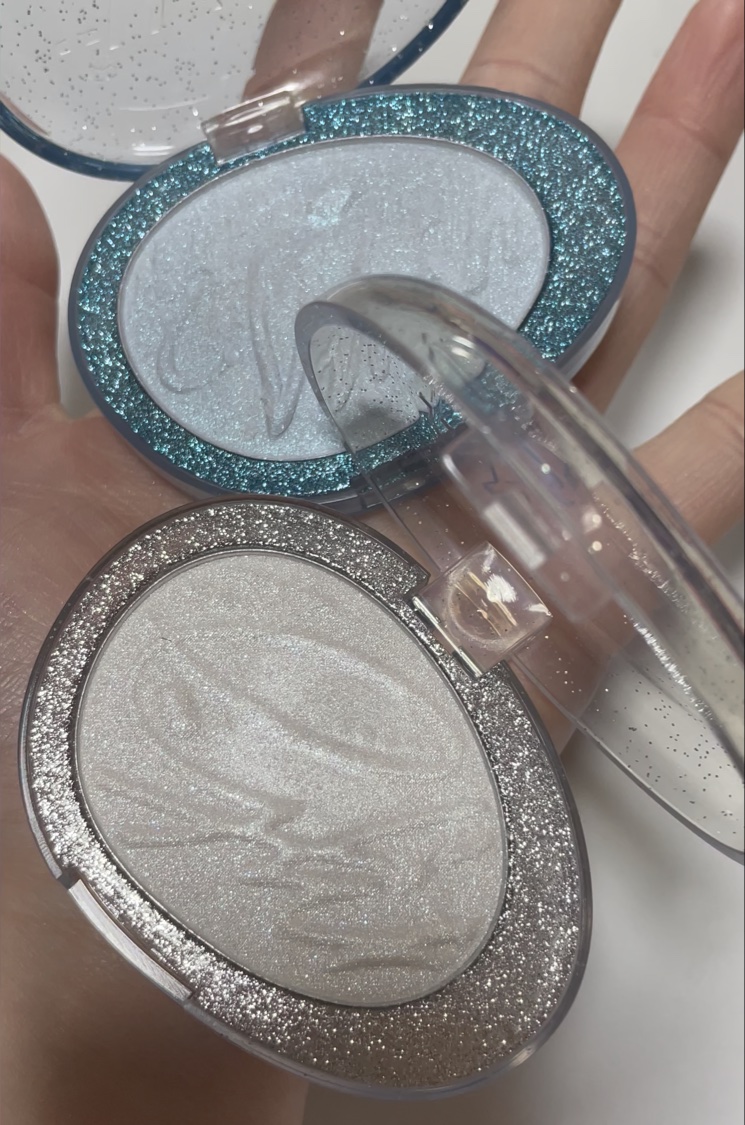水色中粒ラメハイライト ラメの色はほとんどが水色のラメで少しホワイトのラメも見えます。光り方はThe水色!です。 ブルー系ハイライトの中でもここまで水色のハイライトは初めて出会いました🫶🏻 鼻や顔の中心より頬に付ける方が向いてます。 透明感系ハイライトはギラギラが多かったのですがこちらはナチュラルだけど透明感が出ます♩ ブルベさんのナチュラルハイライトに!💞