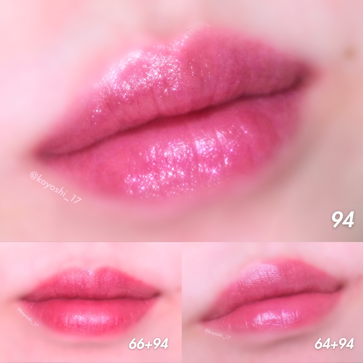 湿式のピンクはくすみを飛ばしてくれて、涙袋に使うのも可愛いです💓 左下のブラウンは、ピンクに重ねることで発色の綺麗さが増します🙆🏻♀️🙆🏻♂️ 右下のブラウンは小さなラメが入っていて控えめにチラッときらめきます💎 湿式のアイシャドウはうっかりすると二重の線に溜まりますつける量やぼかし方で解決します🥰