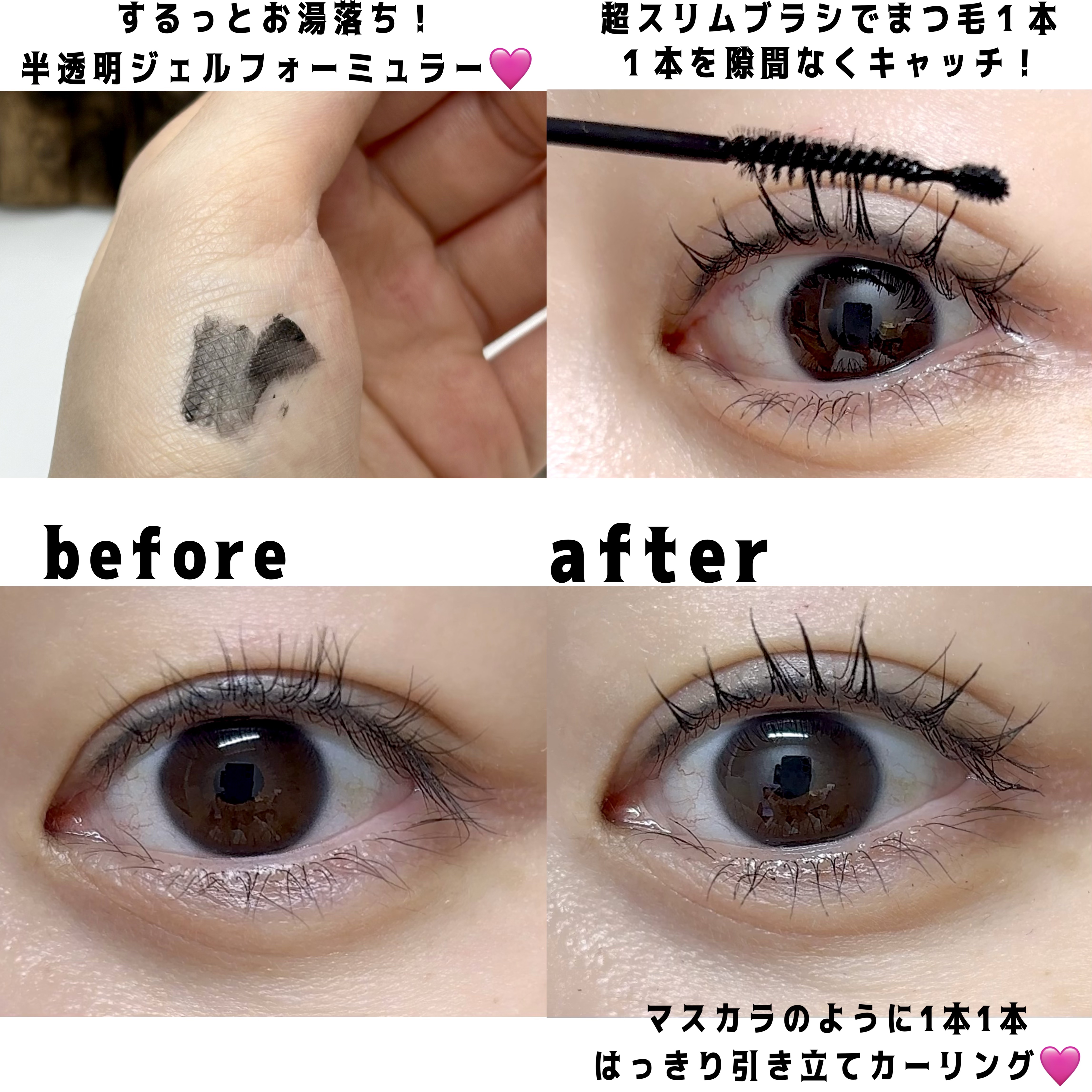 超密着精巧なタッチでマスカラを塗ったような仕上がりにしてくれるアイラッシュティンティングセラムショット👀 高濃度ラッシュケア成分配合 まつげへの負担が少ないので、まつ毛エクステやまつげパーマ後にもオススメ❕ こちらは結構しっかりブラックでマスカラをしたような仕上がり✨ デイリーメイクはもうこれ1本でいいのでは?!