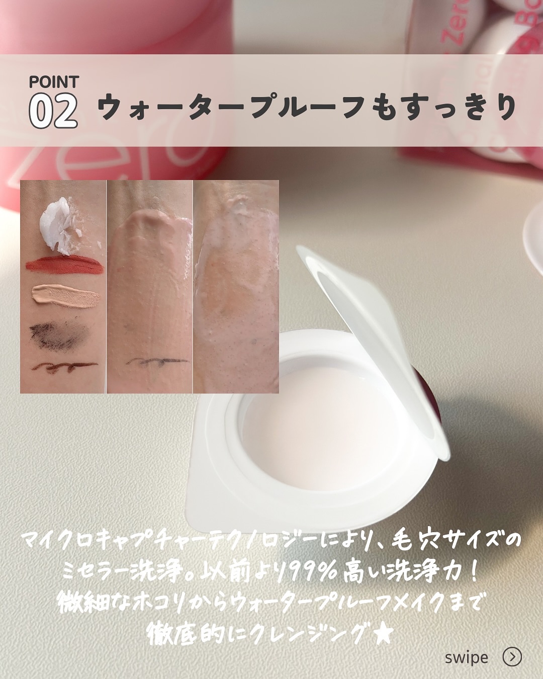 - #オールインワンクレンジングバーム #累積6,500万個販売 01 All-in-one クレンジングバーム ゼロバランステクノロジー仕様で、濃いメイクもきれいにオフ 02 微小粒子状物質をしっかりオフ 臨床テストで確認された微小粒子状物質の洗浄力は91.5% 03 パッチテスト済み & 人工着色料ZERO! ヒトパッチテスト済み&植物由来エキスを使用することで、原料本来の色を実現 *全ての方に皮膚刺激が発生しないということではありません