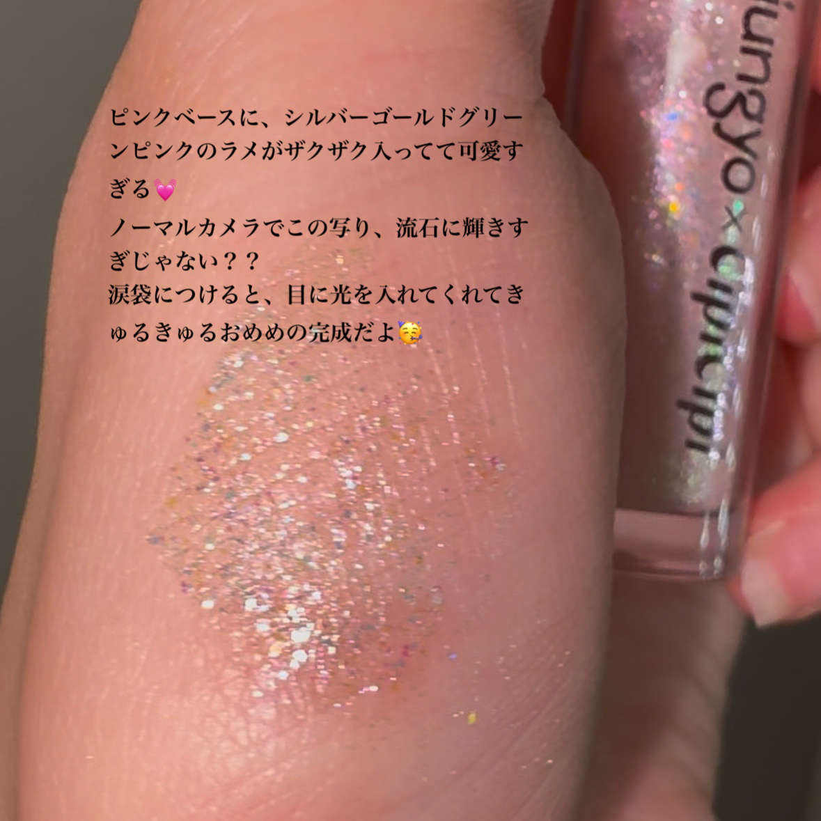 | リキッドアイシャドウランキング第2位 | 中に入っている偏光オーロララメの大きさがまた絶妙で、そのまま塗って使っても良いんだけど瞼にラメを乗せる感じで使ってもキラキラで可愛いよ | 詳細を見る | |