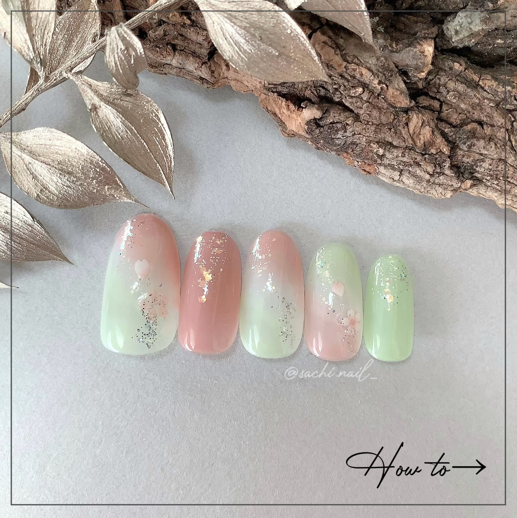 ワンカラーでも指ごとに色を変えるだけでオシャレに見えます💕 画像のようにゴールドラインとストーンを少し足すだけで華やかさがアップ🥰 何度かご紹介したことのあるスポンジで作るグラデーションです✨ スポンジを使うことで境目が綺麗に馴染んでくれます💕 アルミホイルの上でブラウンとトップコートを1:1くらいで混ぜたものを、トップコートのハケに取って3箇所に塗るだけ👌 事前に混ぜたものを塗ることで、爪の上でぼかすより簡単に出来ます💕 ベースカラーが乾く前に点置きしてぼかすことで綺麗にぼかせます✨ スピードが大事なので、使うポリッシュのキャップは全て開けておきましょう😊 天然石のラインはガタガタの方がより天然石っぽく見えるので、ラインを描くのが苦手な方でも大丈夫🙆♀️ 難しそうに見えて、やってみると意外と簡単に出来ます♡