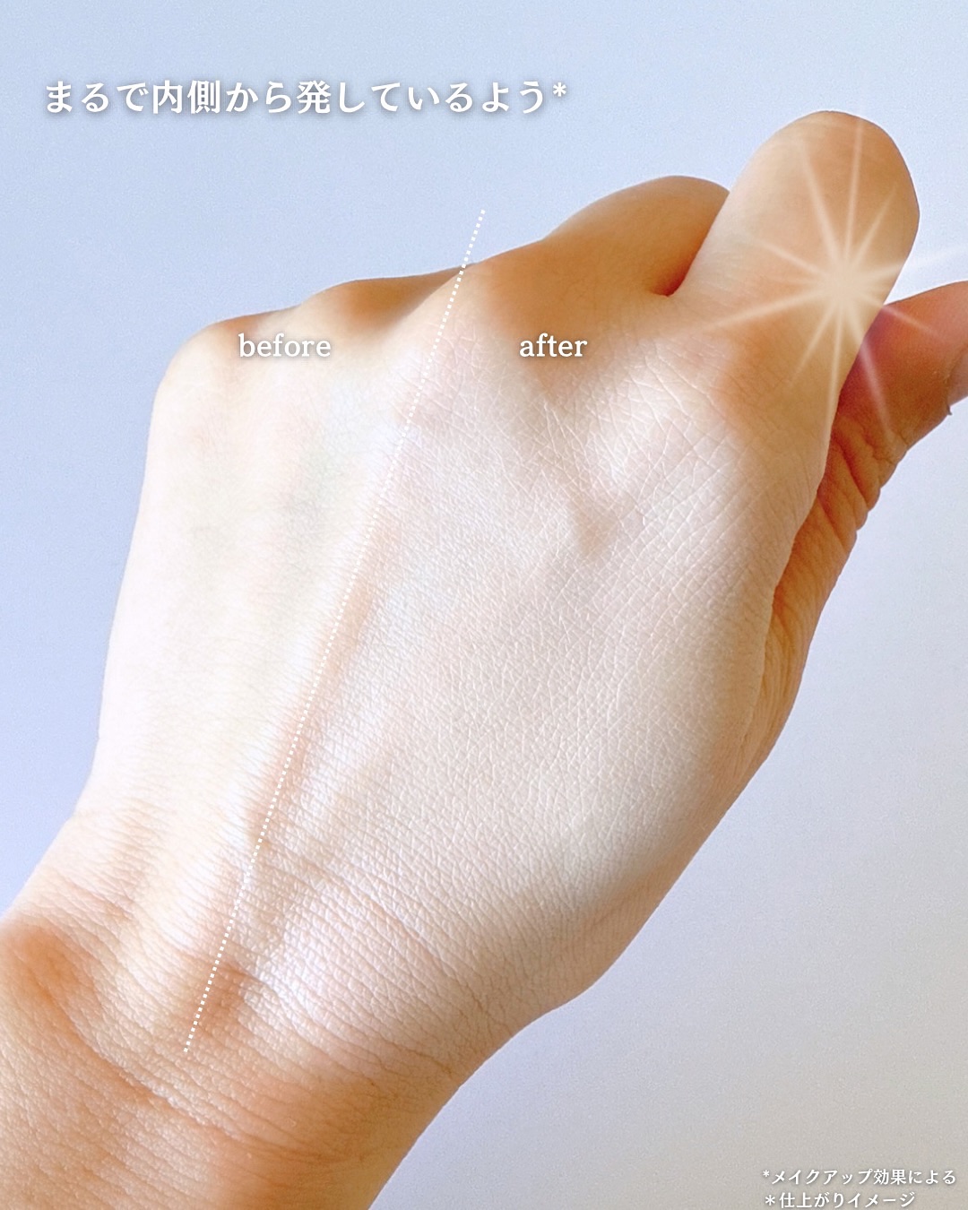 - <00 フェアライト> 水、酸化亜鉛、シクロペンタシロキサン、ホモサレート、安息香酸アルキル(C12-15)、サリチル酸エチルヘキシル、ジ(カプリル/カプリン酸)BG、BG、フェニルトリメチコン、ラウリルPEG-10トリス(トリメチルシロキシ)シリルエチルジメチコン、ダイマージリノール酸ダイマージリノレイル、ナイアシンアミド、トリメチルシロキシケイ酸、パンテノール、硫酸Mg、セチルPEG/PPG-10/1ジメチコン、合成フルオロフロゴパイト、マイクロクリスタリンワックス、ジステアルジモニウムヘクトライト、水酸化Al、トリエトキシカプリリルシラン、1,2-ヘキサンジオール、ステアリン酸、カプリル酸ソルビタン、ラウロイルリシン、カプリル酸グリセリル、ベルガモット果実油、エチルヘキシルグリセリン、アデノシン、ラベンダー油、ローマカミツレ花油、トコフェロール、テトラ(ジ-t-ブチルヒドロキシヒドロケイヒ酸)ペンタエリスリチル、テルミナリアフェルジナンジアナ果実エキス、酸化チタン、酸化鉄 <0.5 ロージーフェア> 水、酸化亜鉛、シクロペンタシロキサン、ホモサレート、安息香酸アルキル(C12-15)、サリチル酸エチルヘキシル、ジ(カプリル/カプリン酸)BG、BG、フェニルトリメチコン、ラウリルPEG-10トリス(トリメチルシロキシ)シリルエチルジメチコン、トリメチルシロキシケイ酸、ダイマージリノール酸ダイマージリノレイル、ナイアシンアミド、パンテノール、合成フルオロフロゴパイト、硫酸Mg、セチルPEG/PPG-10/1ジメチコン、マイクロクリスタリンワックス、ジステアルジモニウムヘクトライト、水酸化Al、トリエトキシカプリリルシラン、1,2-ヘキサンジオール、ステアリン酸、カプリル酸ソルビタン、ラウロイルリシン、カプリル酸グリセリル、ベルガモット果実油、エチルヘキシルグリセリン、アデノシン、ラベンダー油、ローマカミツレ花油、トコフェロール、テトラ(ジ-t-ブチルヒドロキシヒドロケイヒ酸)ペンタエリスリチル、テルミナリアフェルジナンジアナ果実エキス、酸化チタン、酸化鉄 <01 アイボリー> 水、酸化亜鉛、シクロペンタシロキサン、ホモサレート、安息香酸アルキル(C12-15)、サリチル酸エチルヘキシル、ジ(カプリル/カプリン酸)BG、BG、フェニルトリメチコン、ラウリルPEG-10トリス(トリメチルシロキシ)シリルエチルジメチコン、ナイアシンアミド、ダイマージリノール酸ダイマージリノレイル、トリメチルシロキシケイ酸、パンテノール、合成フルオロフロゴパイト、硫酸Mg、セチルPEG/PPG-10/1ジメチコン、ジステアルジモニウムヘクトライト、マイクロクリスタリンワックス、水酸化Al、トリエトキシカプリリルシラン、1,2-ヘキサンジオール、ステアリン酸、カプリル酸ソルビタン、ラウロイルリシン、カプリル酸グリセリル、ベルガモット果実油、エチルヘキシルグリセリン、アデノシン、ラベンダー油、ローマカミツレ花油、トコフェロール、テルミナリアフェルジナンジアナ果実エキス、酸化チタン、酸化鉄