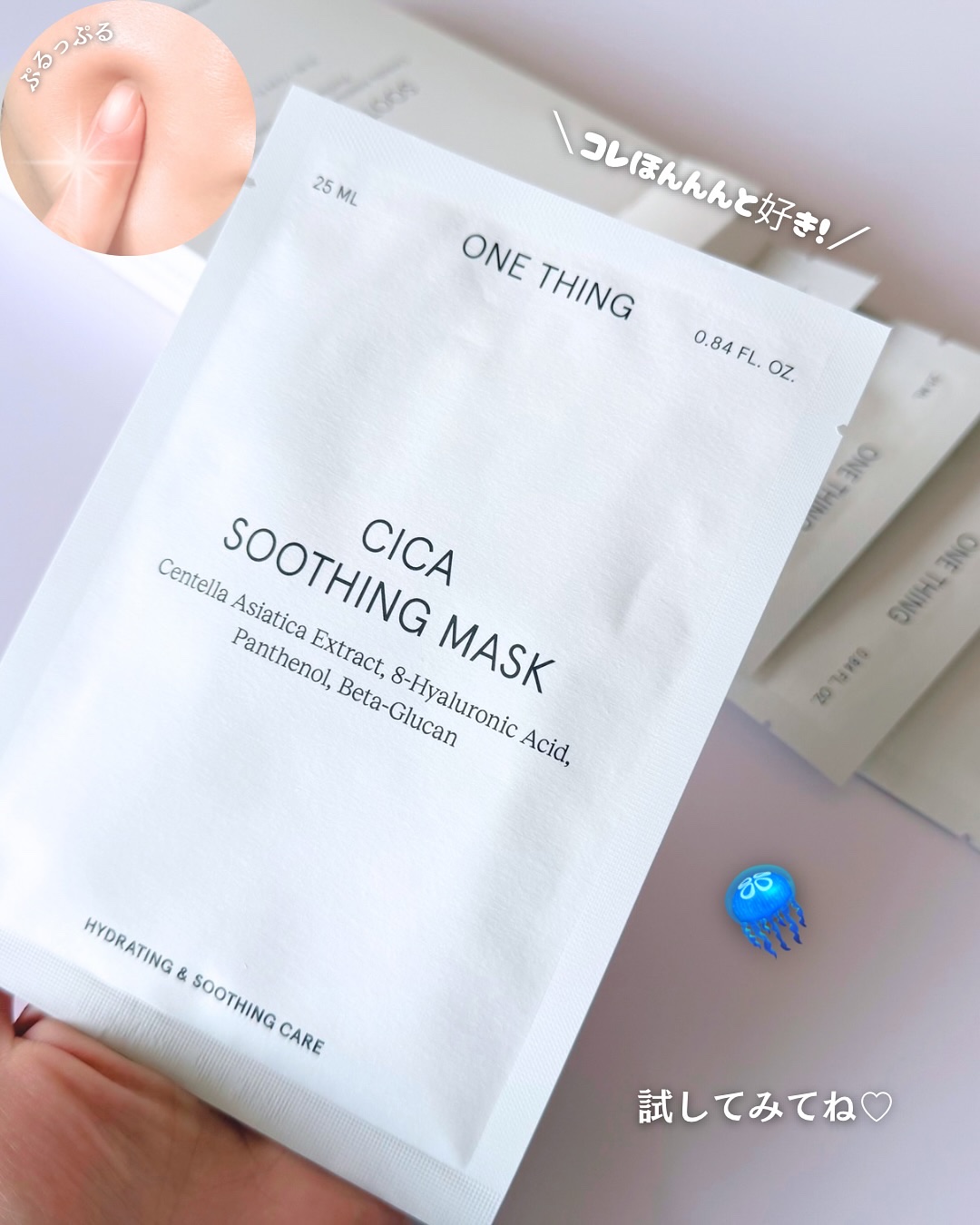ツボクサエキス、パンテノール配合。刺激**を受けた肌を素早く整えながら肌に水分を与え、保湿してくれるんだって✨ まるでクラゲ🪼⁉️なぷるっぷるのシートマスク‼️ ぷるぷるのジェルシートが顔全体に密着してくれる🥺 クラゲのように潤いに満ちた肌を手に入れたい方は是非使ってみてね🩷