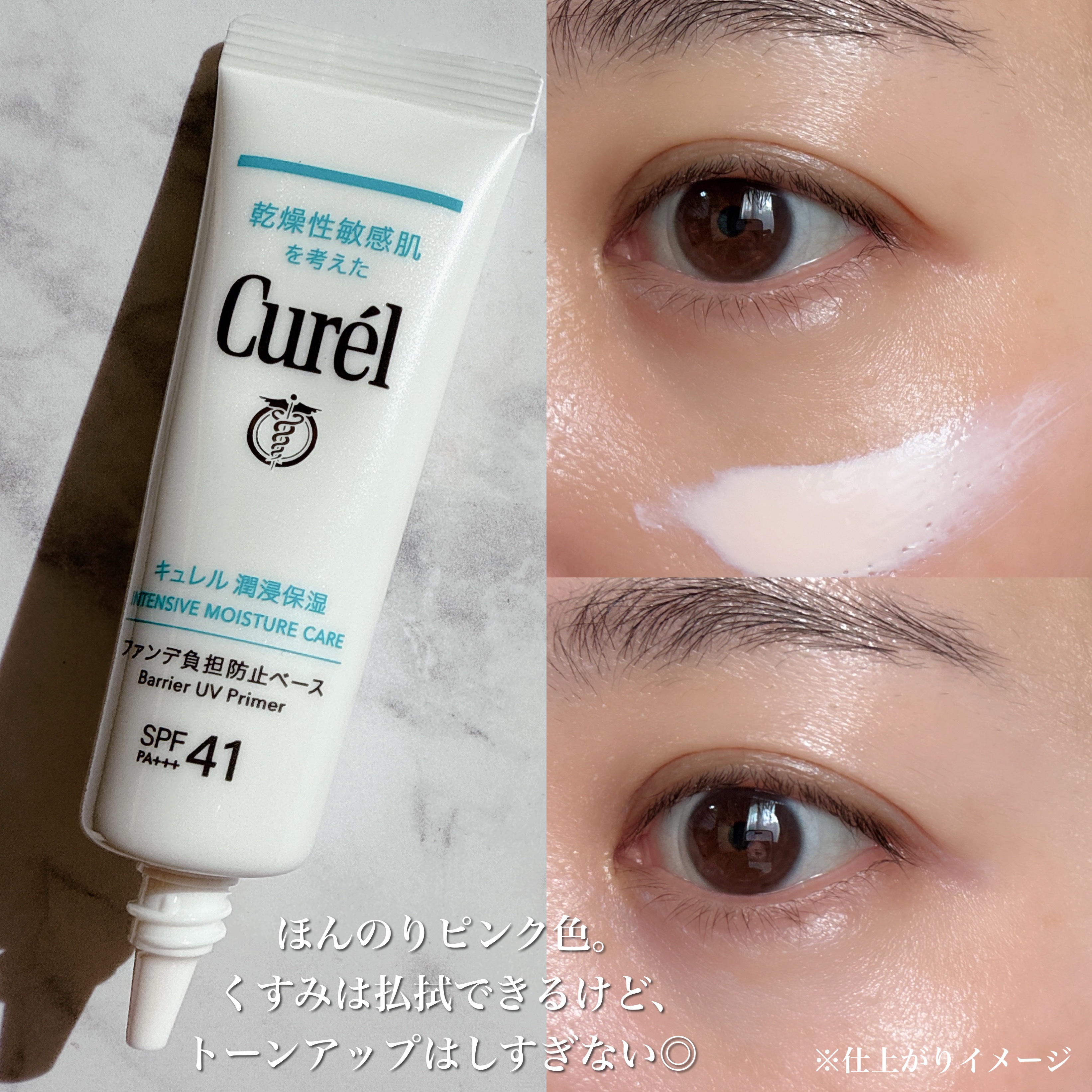ファンデ負担から肌を守りながら自然にトーンアップ、ツヤ感もでる!! *ごわごわ重たく感じること 肌に優しいのにSPF41PA+++もあって トーンアップも十分で、ツヤ感(繊細パール配合)もでるってすごいと思う。 リピする!!