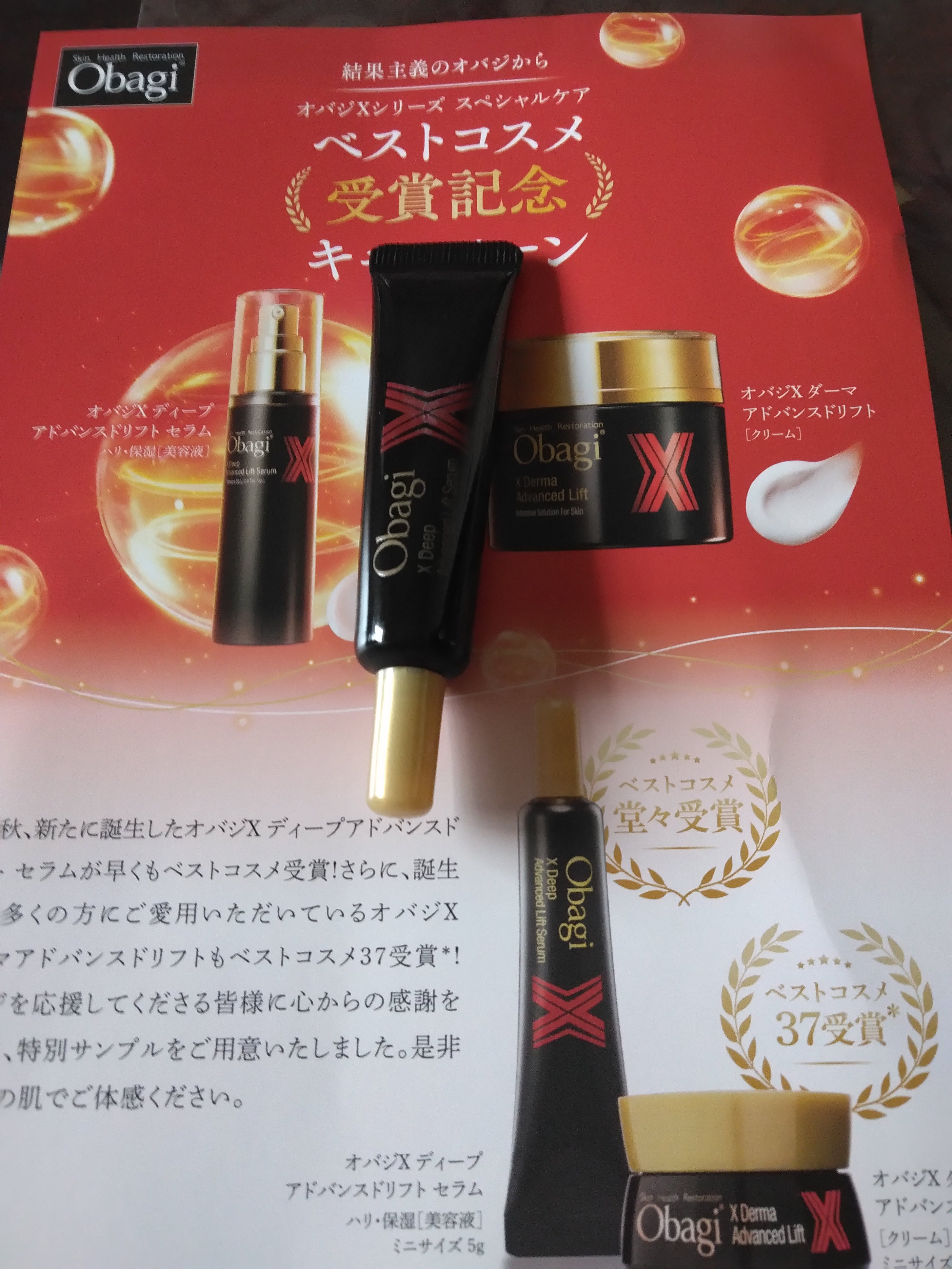 結構前ですが、オバジのキャンペーンでサンプル頂きました!特にセラムは気になっていたので、お試しできて嬉しい❤️伸びがよく、みずみずしさも感じられる使用感でとてもいいです✨クリームはエイジングケア!って感じのこってりとしたテクスチャー。塗りたて...