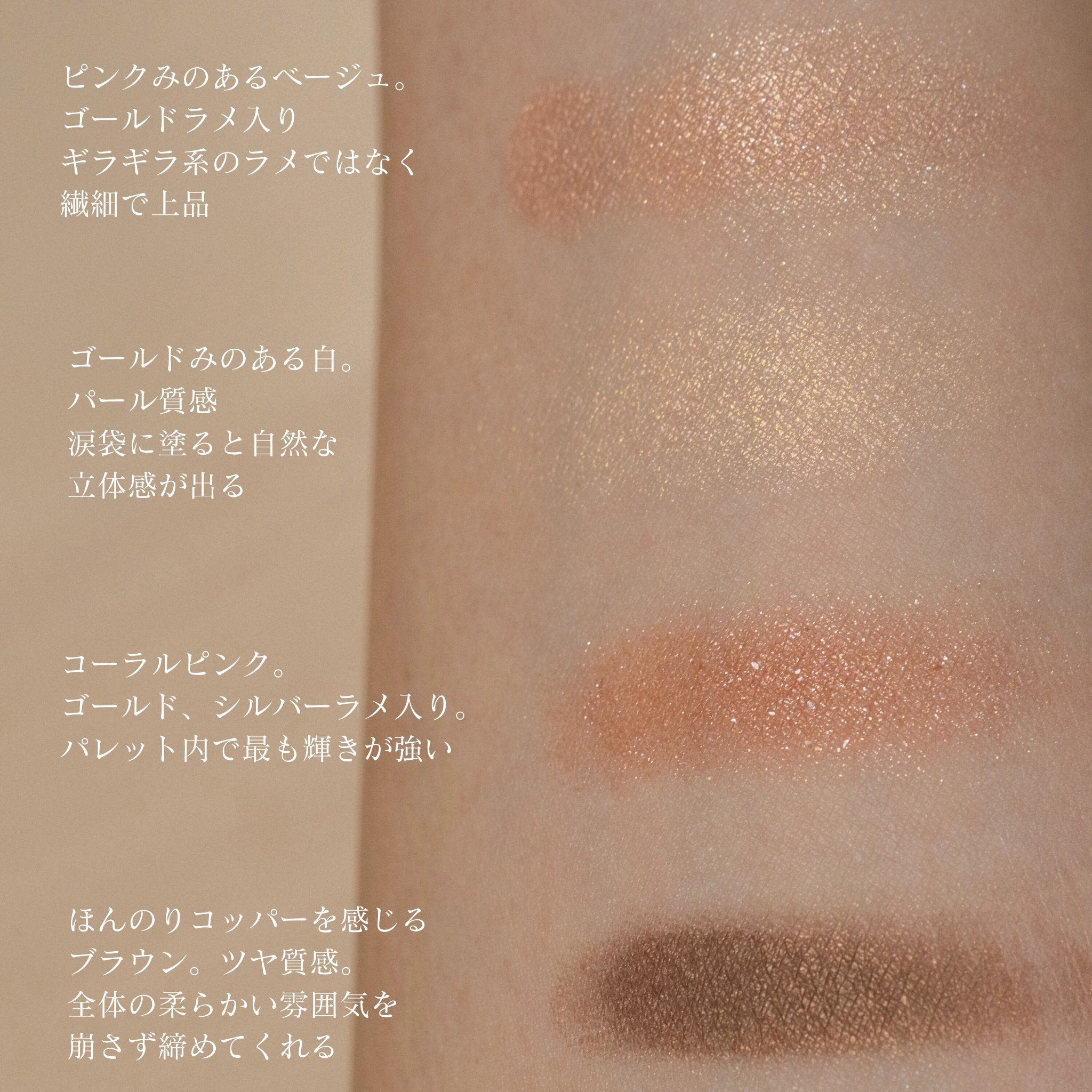 - 新たに生まれるSUQQUの顔“シグニチャー”なアイシャドウパレット。こだわりの色と洗練で、贅がきらめく目元に。 求めたのは、気高いベーシック。ぴたっと密着。まるでまぶたの一部になりすますような“色艶の薄膜”。重ねても透明感が濁らず、白浮きしない洗練。至福のなめらかなテクスチャーがもたらす満足感。 贅沢な絹や麻をさりげなく着るように、質のいいベーシックにこだわる大人の贅を表現。品の良さとモードを兼ね備えた新しいアイシャドウパレットです。
