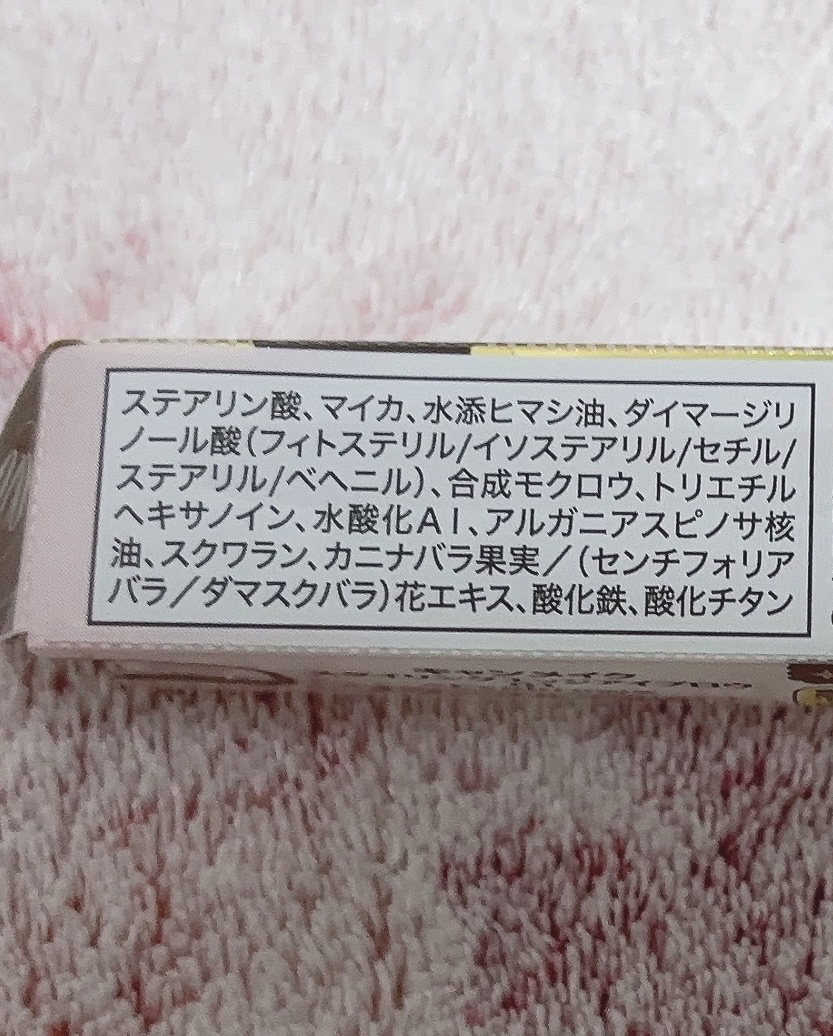 - <01 ナチュラルブラウン> ステアリン酸、マイカ、水添ヒマシ油、ダイマージリノール酸(フィトステリル/イソステアリル/セチル/ステアリル/ベヘニル)、合成モクロウ、トリエチルヘキサノイン、水酸化Al、アルガニアスピノサ核油、スクワラン、カニナバラ果実/(センチフォリアバラ/ダマスクバラ)花エキス、酸化鉄、酸化チタン <02 アッシュブラウン> ステアリン酸、マイカ、水添ヒマシ油、ダイマージリノール酸(フィトステリル/イソステアリル/セチル/ステアリル/ベヘニル)、合成モクロウ、トリエチルヘキサノイン、アルガニアスピノサ核油、スクワラン、カニナバラ果実/(センチフォリアバラ/ダマスクバラ)花エキス、水酸化Al、酸化鉄、酸化チタン