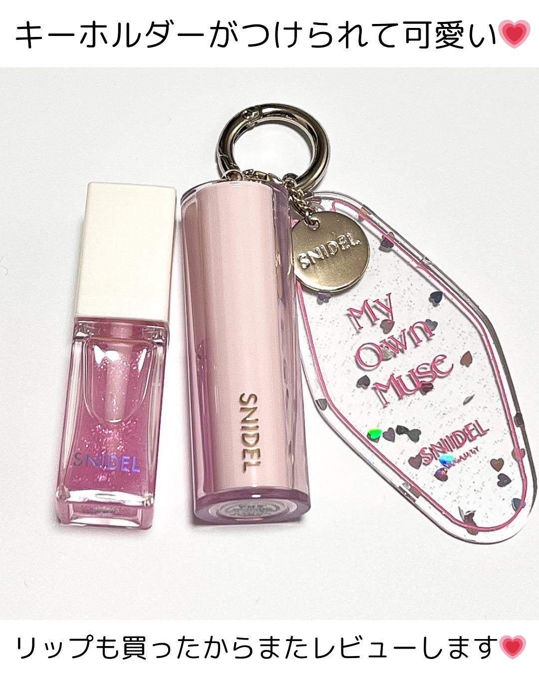 唇の温度でとろけるようになじむNewリップ! 乾燥しがちなこの季節でも、しっかり潤いをキープしてふっくら仕上げてくれるリップは全8色展開。 08番!わたしはくすみのピンクほいほい人間なので即座にお気に入りに😊 しかもひと塗りでしっかり発色。 このリップペールピンクのパケが可愛いだけじゃなくてチャームがつけられるリングがあるから可愛くデザインできる!