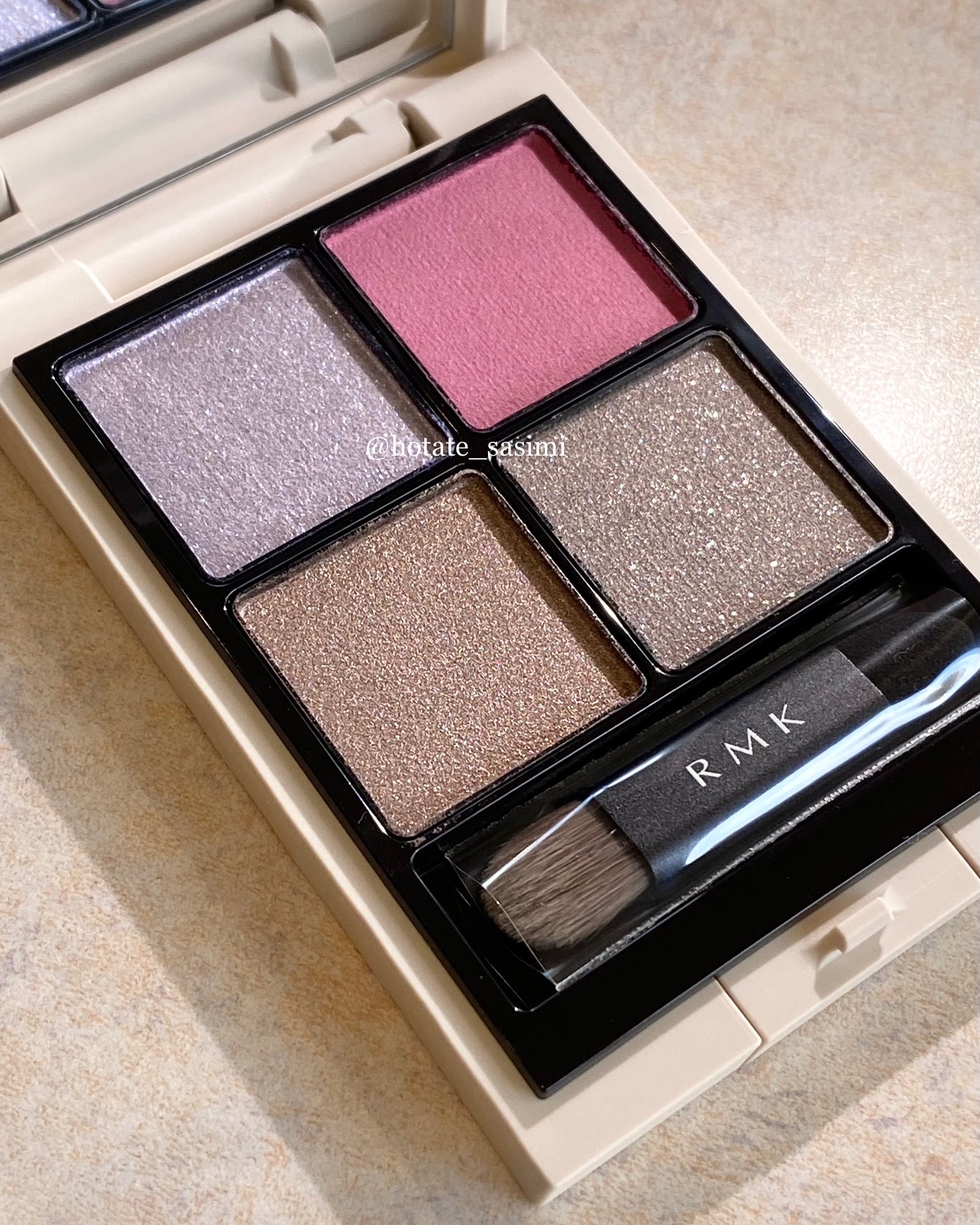 - 微差までこだわりぬいた色と質感のニューエッセンシャルパレット。 重ねるごとに深みを増し、 さまざまな質感やきらめきが混ざりあってつくり出すのは まるでワンカラーのように美しい、 やわらかくモダンなスモーキーアイ。 RMK新質感のライトシャイニーを含む、シャイニー、シマー、 パールシマー、マットのきらめきやツヤを放つ質感と色は、 それぞれが主役級でありながら4色すべてを重ねても濁らず、 奥ゆきを生みながらもダークにならない設計を追求しました。 白膜感や厚みの出にくい処方だから、 肌の色をいかしてクリアに発色。 透明感とツヤのあるパウダーが、 まぶたにやわらかくのび広がり、しっとりと肌と一体化。 肌になじみながらも主張する奥ゆきと透明感が目もとを彩り、 まとう人のパーソナリティをよりいっそう引き立てます。