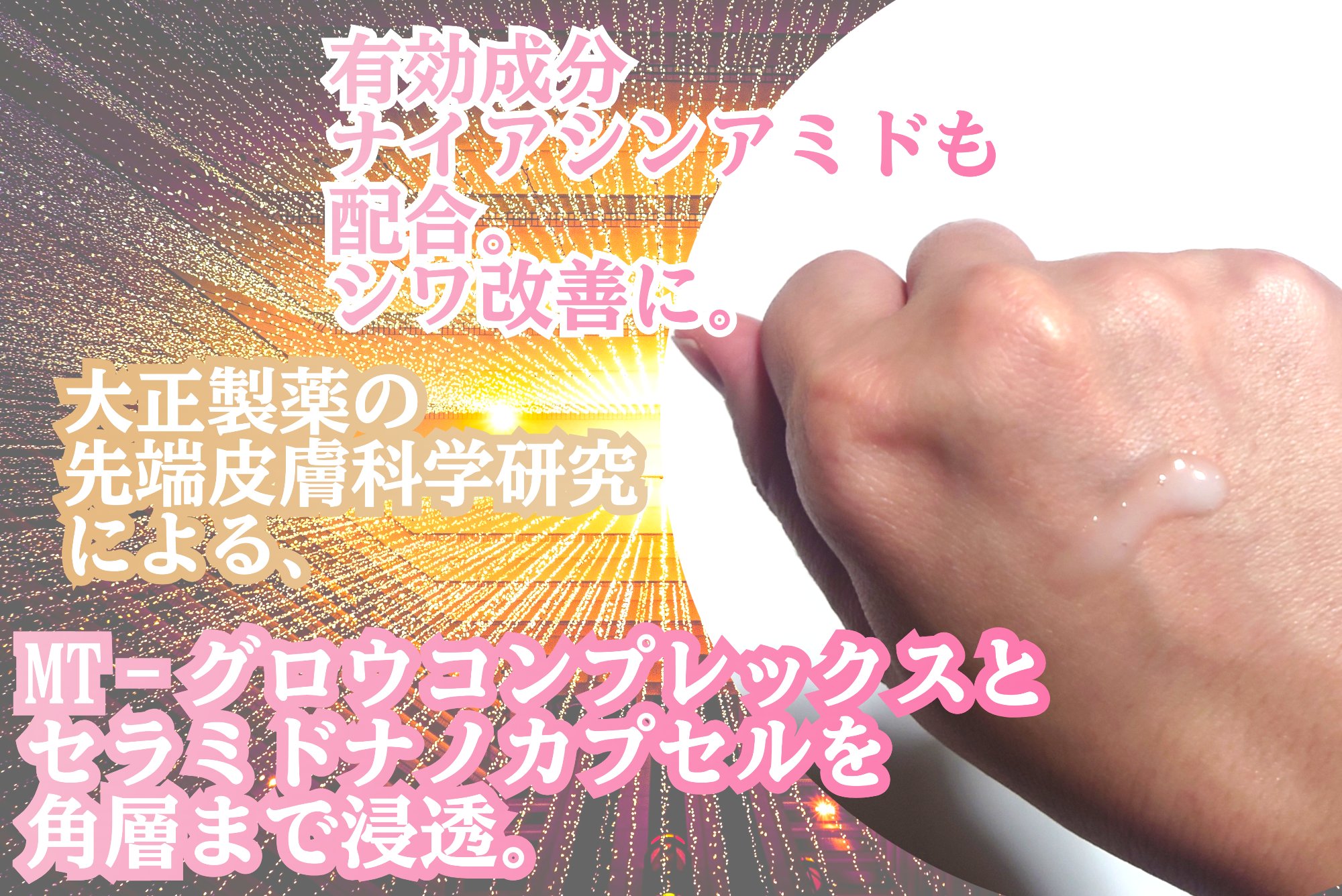 - 肌本来の美しさを呼び覚まし、キメを整えふっくらハリ感のある肌に導く洗顔後のまっさらな肌に使う先行美容液。薬用シワ改善成分「ナイアシンアミド」、大正製薬の独自成分「MT-グロウコンプレックス」、「セラミドナノカプセル」配合。メーカー独自の浸透*技術で、角質層のすみずみまでうるおいで満たします。思わず深呼吸したくなるラグジュアリー感あふれる、フローラルの香り。*角質層まで。
