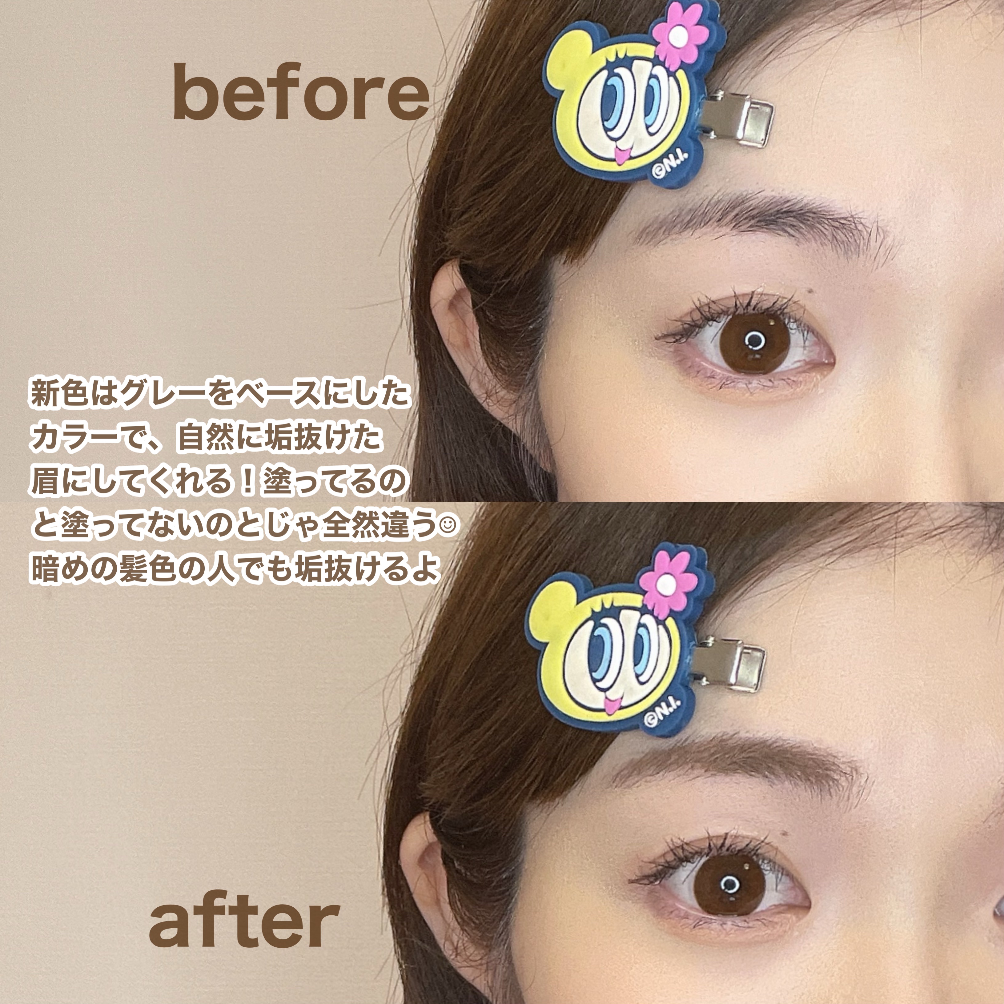 新色のモカグレージュ♡ 2025年3月1日ロフト先行発売 自然に垢抜けさせる、まろやかなくすみグレージュ。ほんのり眉がトーンアップして可愛い。 ブラシが小さいから、肌に液が付くことなく、短い毛までしっかり塗りやすかった👏