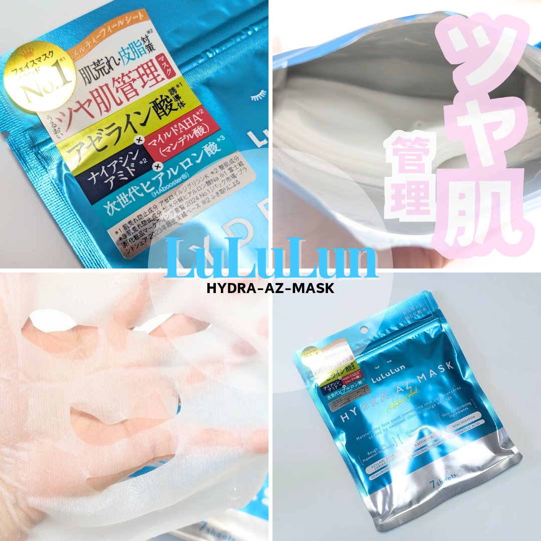 @lululun_jp様✨ルルルンハイドラAZマスク✨あらゆる肌トラブルをケアしてくれる救世主マスク✨"アゼライン酸誘導体"がメイン成分になっているルルルンマスクです☺(肌荒れ防止成分)美肌の土台をつくりを支える4つの美容サポート成分も配合し...