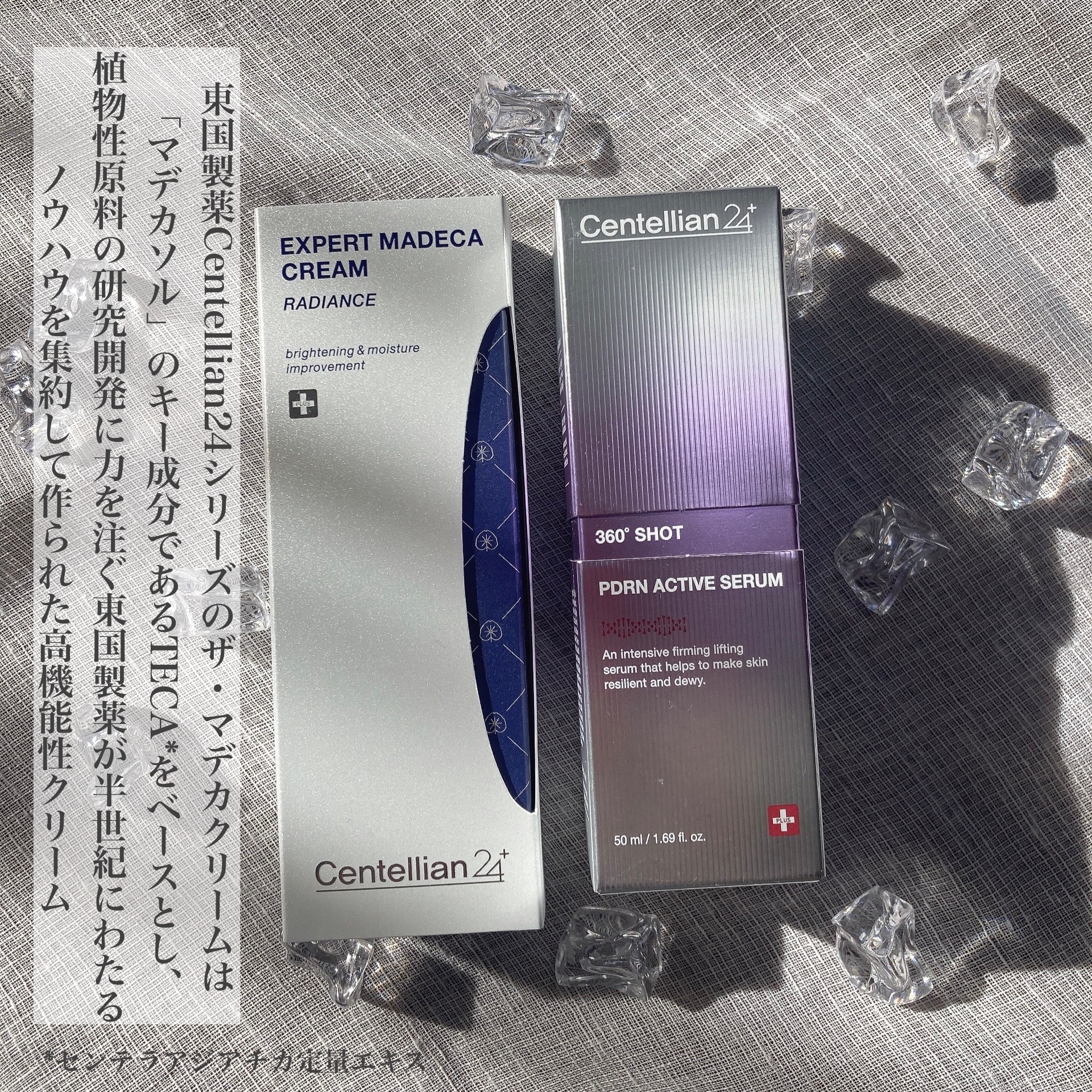 Centellian24シリーズのザ・マデカクリームはマデカソルのキー成分TECAをベースに作られており、24は24歳の女性の肌を目指して24時間しっとり維持する、と言う意味が込められているそうです。 PDRNxコラーゲンのシナジー効果で、360度どの角度からも引き締まって見えるもっちり肌。長時間ハリ感サポートで、より弾力あふれる健康な肌へと導いてくれるそう。 TECAをベースに、25種類のペプチドとホホバ種子エキスを配合したNEW TECA-CELLが、ハリを失った肌に効果的にアプローチ。