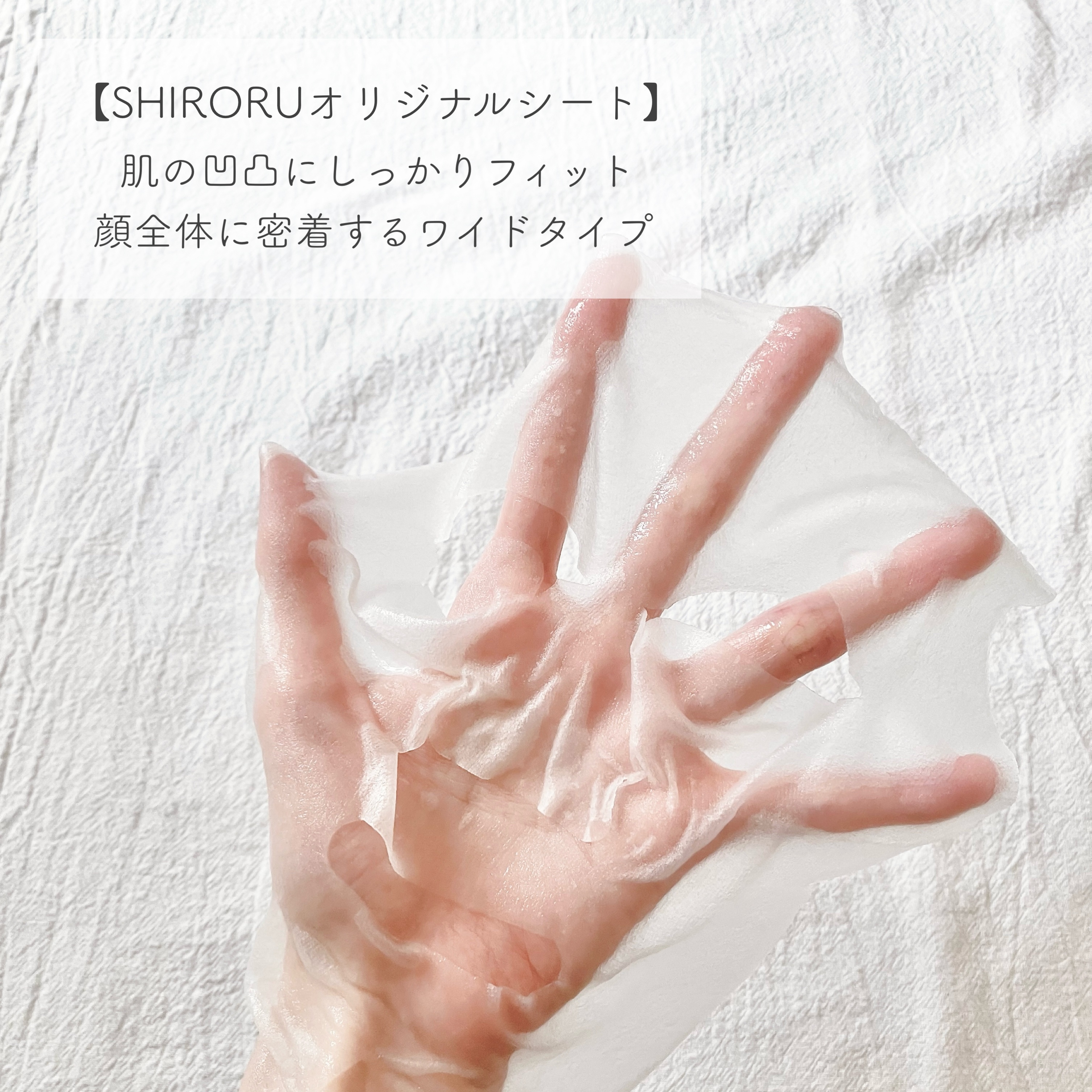 - POINT1 美容医療の場で人気の「ヒト臍帯由来エクソソーム」を配合 エクソソームは、若返りや肌トラブルの予防など美肌効果を与える物質です。 その中でも赤ちゃんと母体を結んでいる臍帯より採取、市場では1%しか出回らない貴重なヒトサイタイ血由来のものを配合しました。 ヒトサイタイ血由来のエクソソームは、脂肪由来・歯髄由来よりも質・量が良いと言われています。 POINT2 サーモンから抽出される「ポリヌクレオチド(PN)」配合 ポリヌクレオチド(PN)(DNA-Na)とは、サーモンのDNAから抽出される高分子化合物です。 ポリヌクレオチドには、線維芽細胞を刺激することで細胞の増殖を促すはたらきがあるため、細胞修復や血管の新生など促進する効果が期待できます。 皮ふを内部からふっくらと再生することができるので、加齢によって肌のしぼみや小じわが気になり始めたという方や、肌のうるおいを取り戻したい方からとても注目されている成分です。 POINT3 シートには高級不織布「ベンリーゼ®」を使用 こだわりの美容成分をしっかりとお肌へ届けるために、密着性と水分保持力に優れたベンリーゼ®を採用しました。 天然由来原料による肌や地球へのやさしさと、すぐれた機能性を同時に実現します。 POINT4 約3分*²で保湿完了!朝までぷるるん保湿*³お肌に 5種類のヒアルロン酸の中にある『進化型ヒアルロン酸』を配合することにより約3分で保湿完了! 朝までぷるるん保湿お肌に。 *²お手入れの時間*³当社比 POINT5 保湿だけでなく肌荒れ予防成分も配合 POINT6 年齢が出やすい目元部分には『目下ダブルケア』 全ての方の顔にフィットするよう研究を重ねSHIRORUオリジナルの型を作成。 目元ギリギリまでたっぷり保湿します。 発売日 :2024/11/1(金) 先行発売:2024/8/31(土)