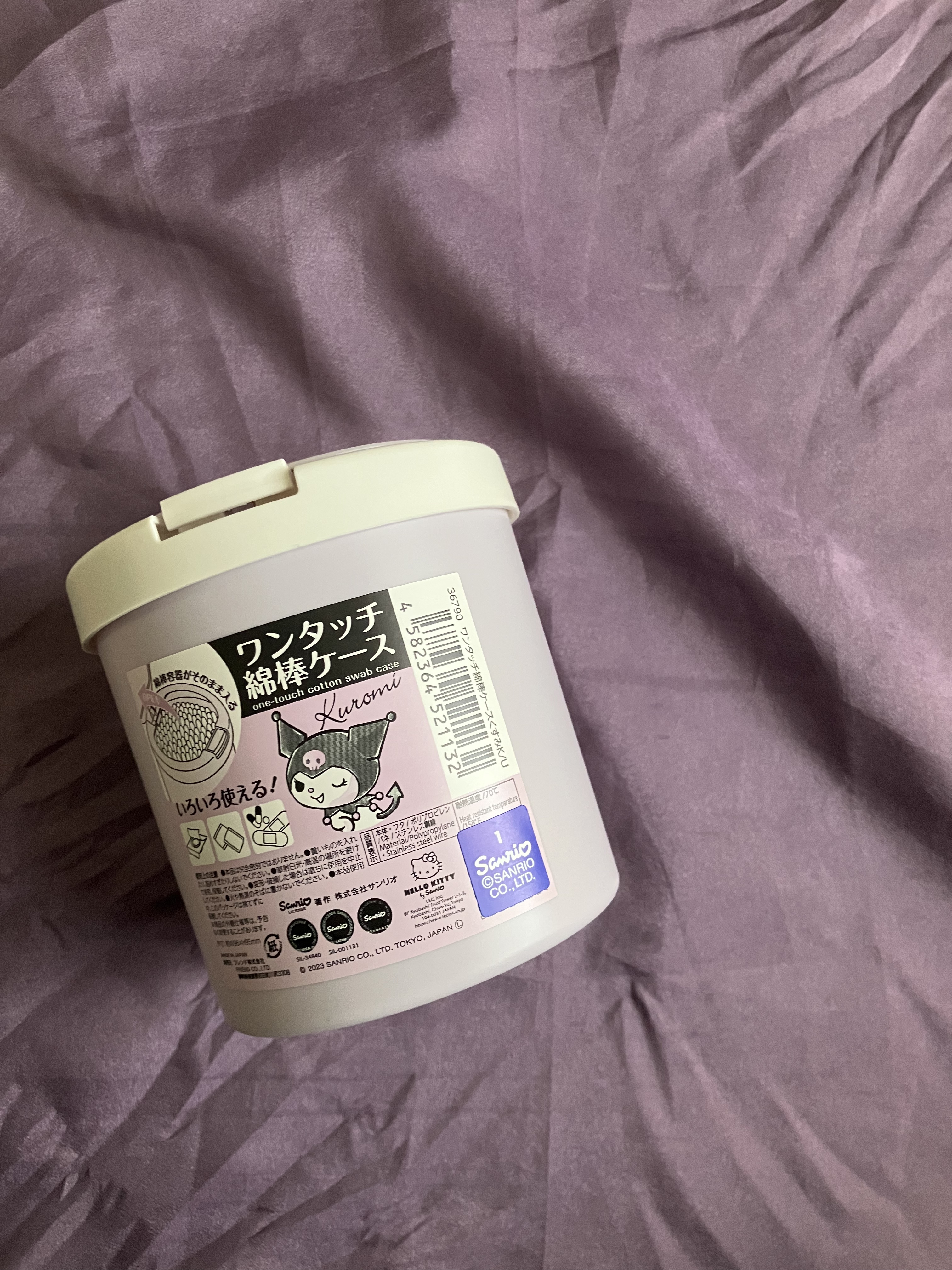 ワンタッチで開く綿棒ケースなので、ストレスフリーです😽綿棒ケースを開けるのって地味にストレスだよね😂 綿棒が元々入ってる透明ケースごと、入るので衛生面も心配ない🤍 キティちゃんとクロミちゃんもあったよ😉