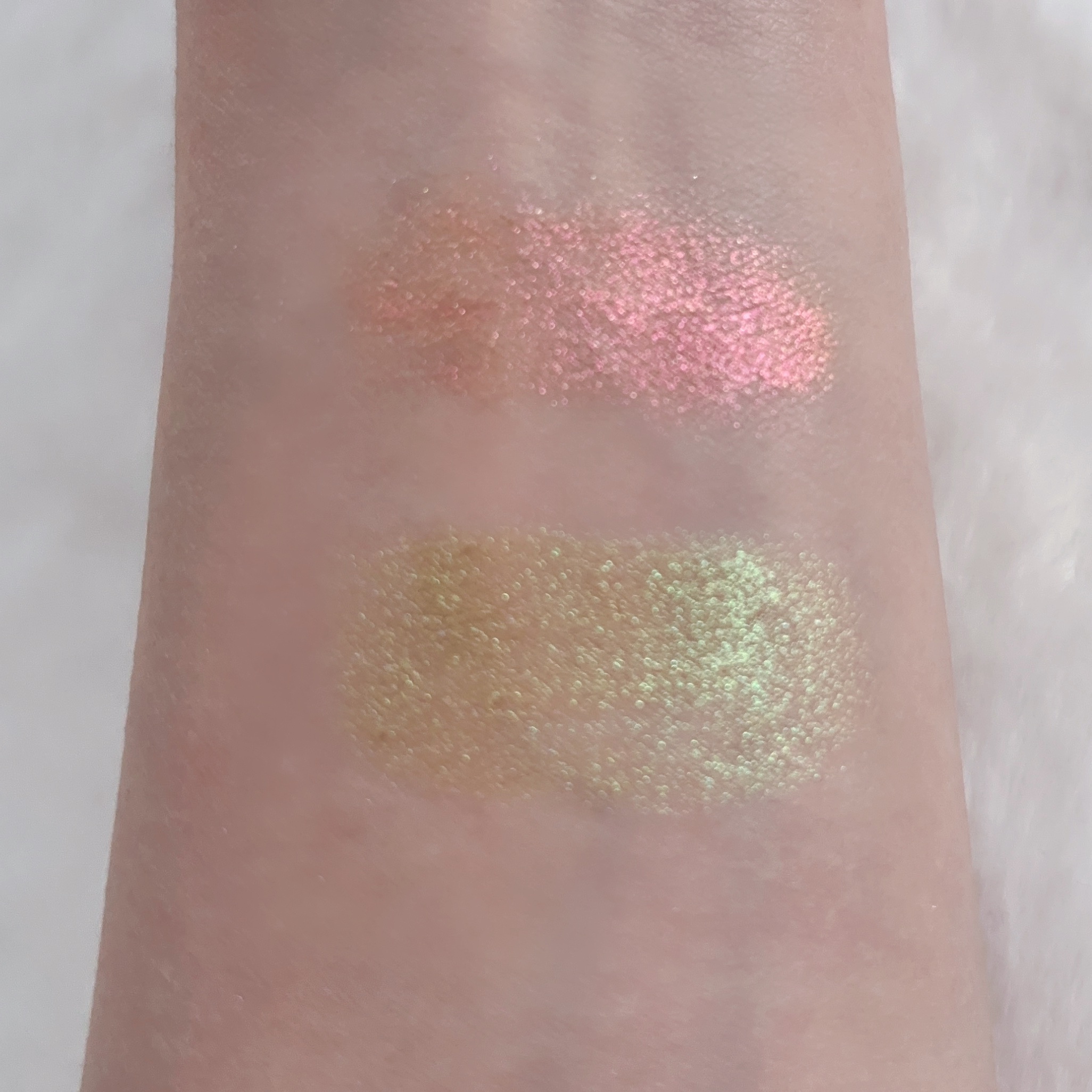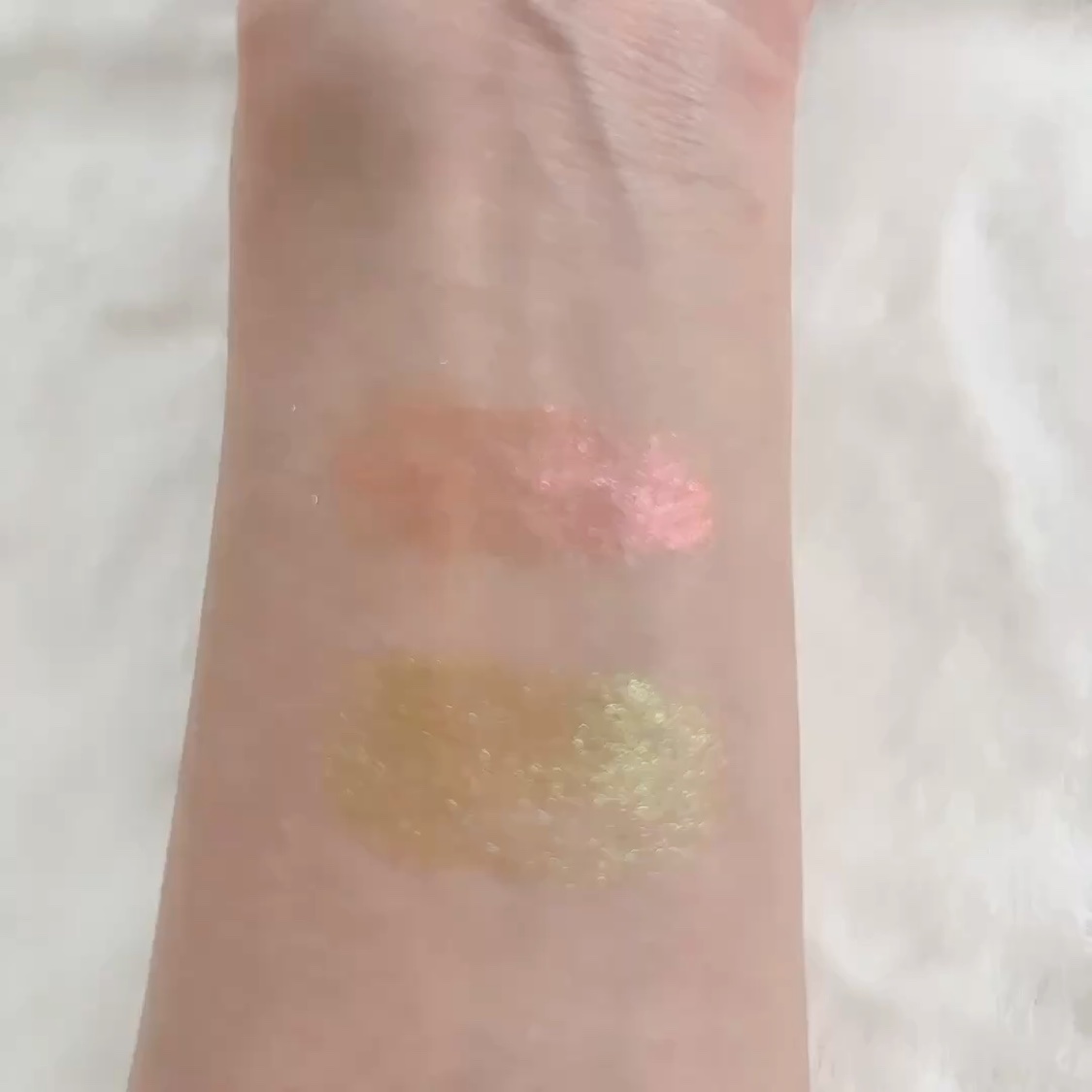 3色全てにゴールドラメが入ってて、くすみの落ち着いたカラー✨ 落ちついてるけど、上品なラメ・透明感・艶感・濡れ感が凄い😍 箔=フォイルからインスパイアされ 湿式製法を採用して、リキッド状にして固めてから圧縮し、乾燥して固めてるそうです リュクスアイシャドウとはまた違い しっとりして、柔らかい粉質ですが ピタッと密着します✨ 単品でも美しく、存在感ありますが 合わせてると更に美しい🥰 3色合わせてみたら、凄く綺麗な色になり 気に入りました💕