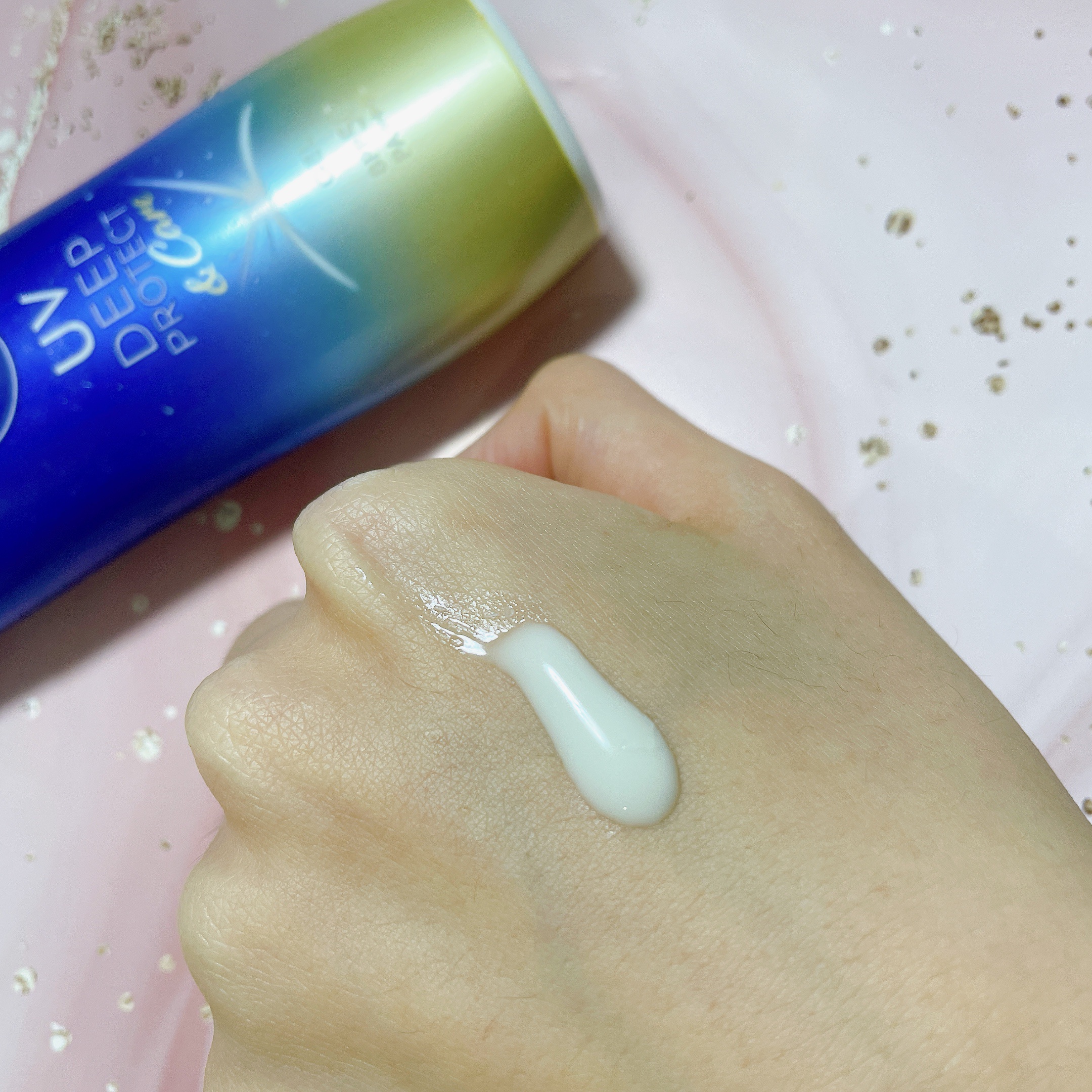 新 日やけによるシミ予防UV※1 シミの原因になるUV-Bとシミ・ハリ・弾力の低下の原因になるUV-Aもしっかり防ぐ 乳白色のジェルはとても伸びが良くて しっかり顔や身体に馴染みました✨ 白浮きしなくてみずみずしい使い心地が特にお気に入り……( *´꒳`*)