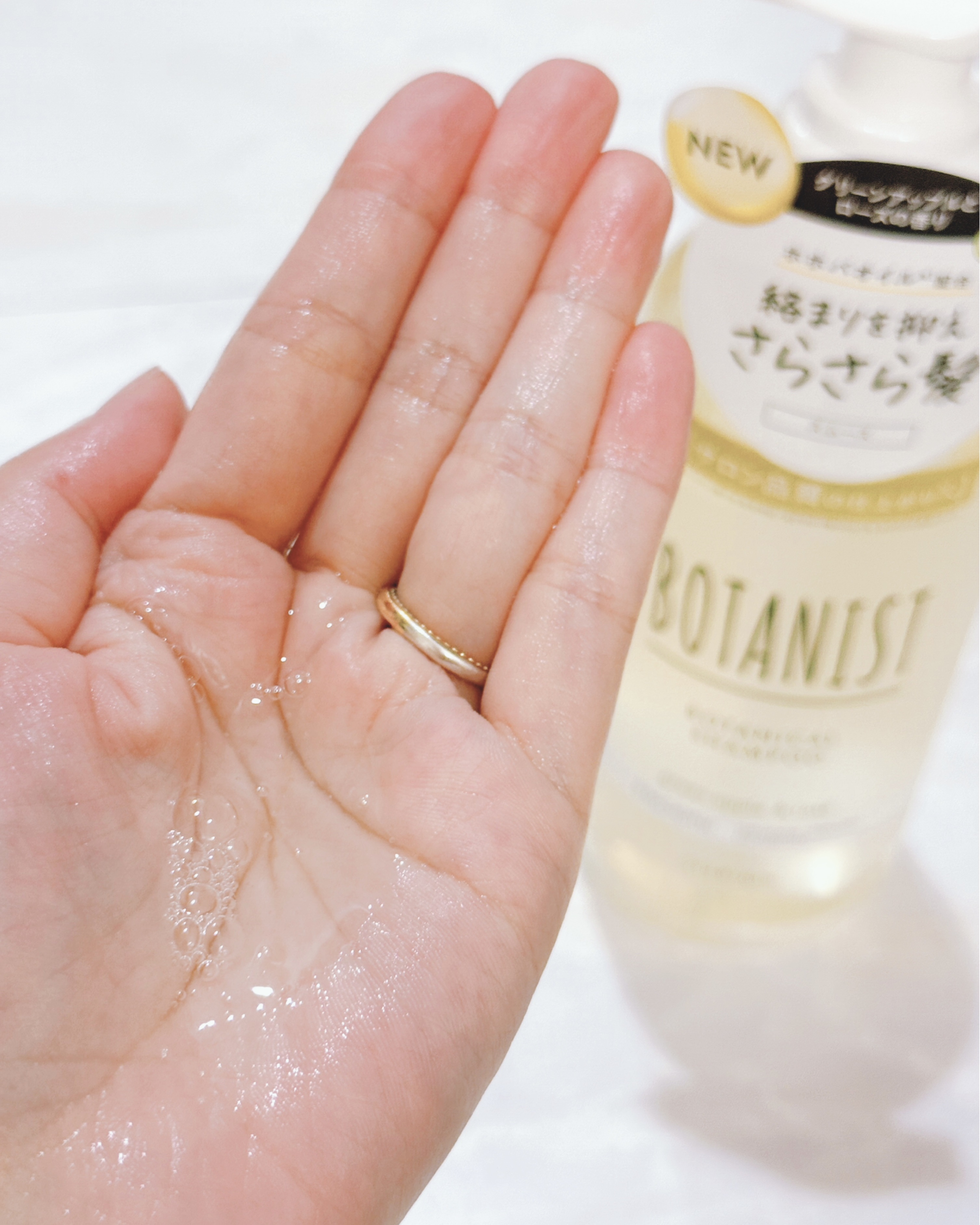 髪の空洞化と構成要素(タンパク質・水分・脂質)に着目し、コメセラミドとマカダミアナッツをナノサイズ化するなど高浸透の濃密ボタニカル美容液が髪の内部まで浸透するようなつくりになっているそうです。 フルーティな香りに包まれながら髪を洗って、すすぐと上品なフローラルの香り!ドライヤーで乾かすとベリーのような甘い香りが広がって、すごく幸せな気持ちになります。 シャンプー : 華やかで優雅なアプリコットとジャスミンの香り 🌟トリートメント : 上品で甘美なアップルとベリーの香り