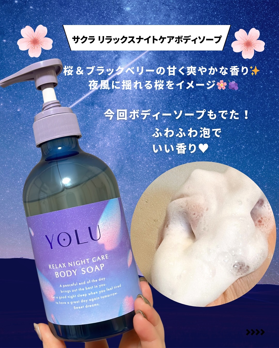 | 桜餅的な桜というよりはチェリーっぽい香りで使い心地はさすがYOLUって感じでつるつるサラサラになります♡ | 詳細を見る | ||