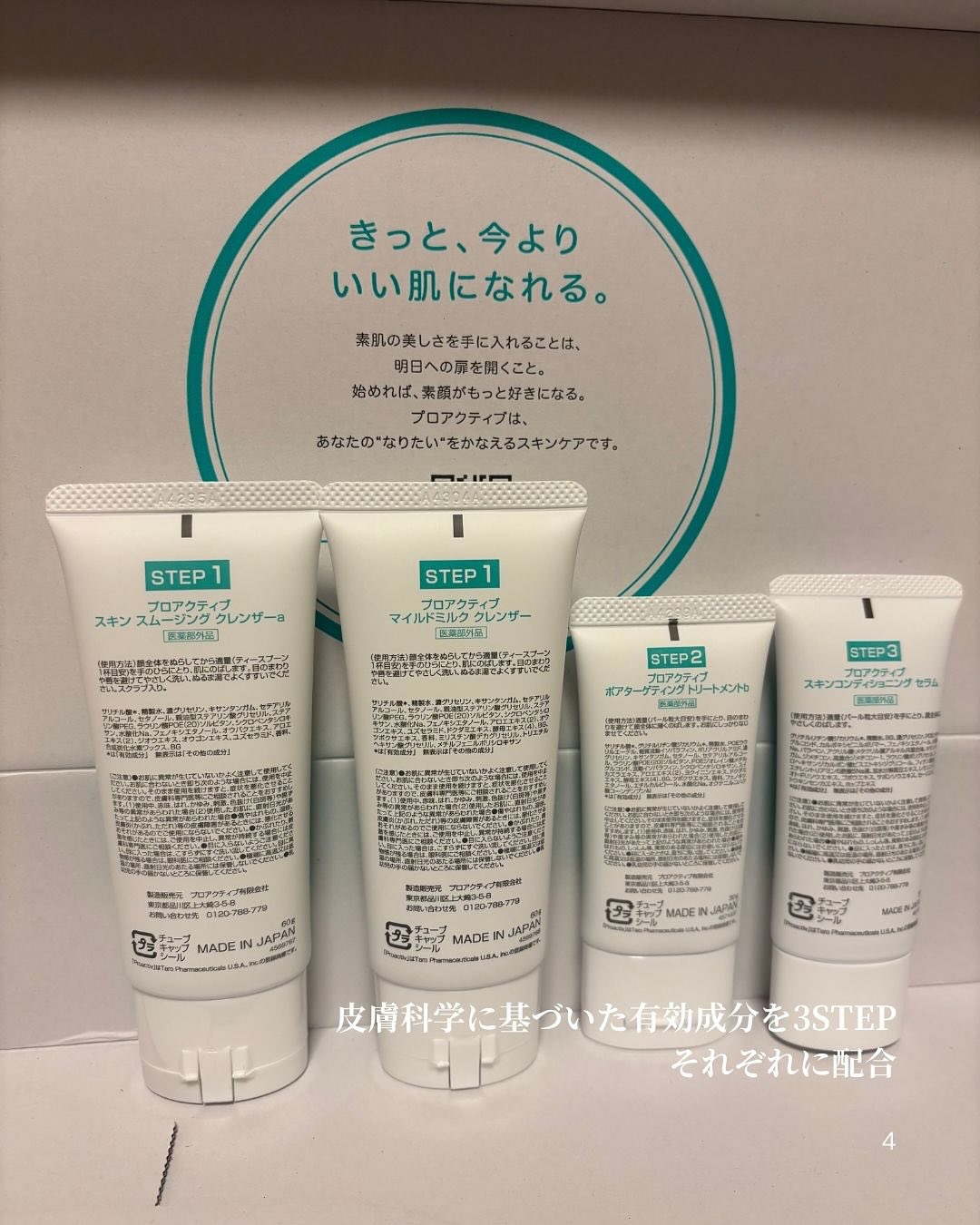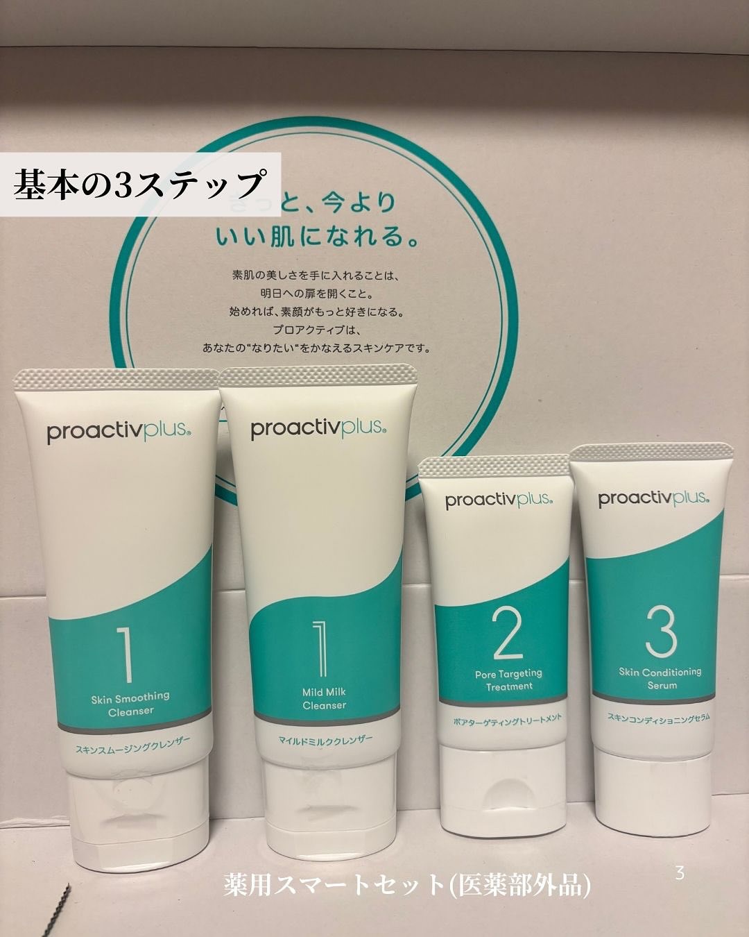 リニューアルした【プロアクティブ 薬用スマートセット(医薬部外品)】で、その印象が変わったよ!✨ 私は細かいスクラブが入っている「スキン スムージング クレンザー」を選んでみたよ🌿 実際使ってみると、スクラブがやわらかくて肌に負担を感じないし、洗い上がりもしっとり✨