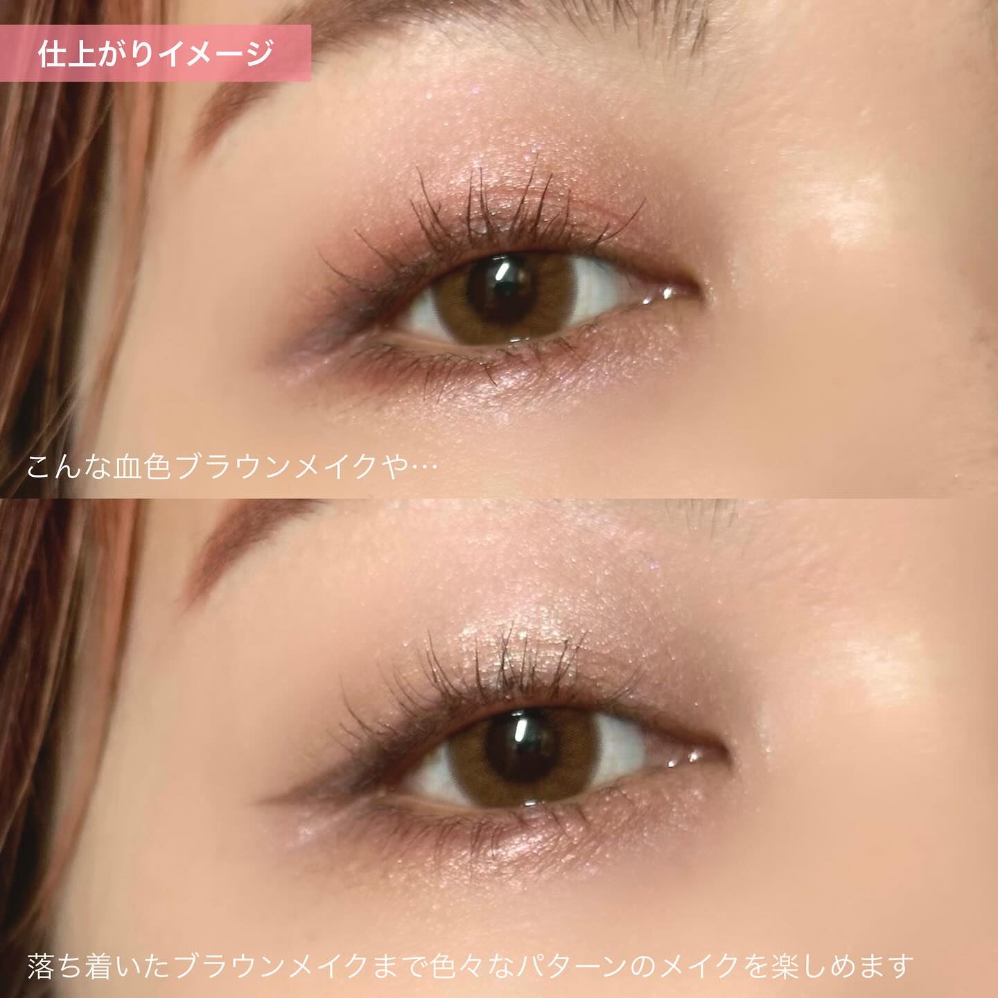 このパレットは、黄味が少なめでブルベにも使いやすいブラウン。 発色はしっかり目だけど、ブラシで調節も可能なので幅広い人に使いやすいパレットだと思います🎀✨ ラメ感も少しずつ異なり、華やかさを抑えたい時は右上を多めに使うと品の良いツヤのあるピンクブラウンメイクになります💎✨ 左上のラメカラーは白っぽいのでどんなアイシャドウとも相性抜群! この可愛い色味と煌びやかなラメは唯一無二です!