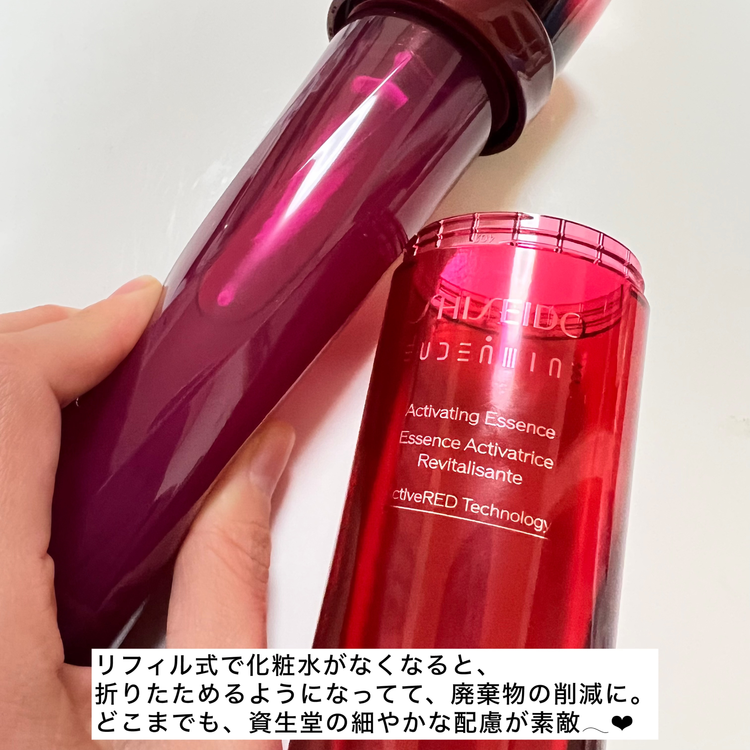 - あなたの美しさを日々、更新。 生命感あふれるつややかな肌が続く。 今まで発揮しきれていない、美の回復に着目。乾燥や環境変化に負けない、美しい肌サイクルを目指して、悪いものを取り除き、良いものを取り入れる習慣を。 角層のすみずみまで素早く浸透し、乾燥による小ジワを目立たなくします*。 輝くような透明感と、うるおったなめらかな肌へ導きます。 *効能評価試験済み <使用方法> ●朝と夜、洗顔の後、適量を手のひら、またはコットンにとり、顔全体にていねいになじませます。 <レフィルの正しいセット方法> ・新しいレフィルに、再利用するリングパーツをはめてから、外容器にセットをします。 ・リングパーツをはめる前にレフィルを外容器に入れると正しくレフィルがセットできないため、中味が漏れる可能性があります。 ※リングパーツを水平にし、レフィルの首元にカチっと音がするまで押し込んでください。