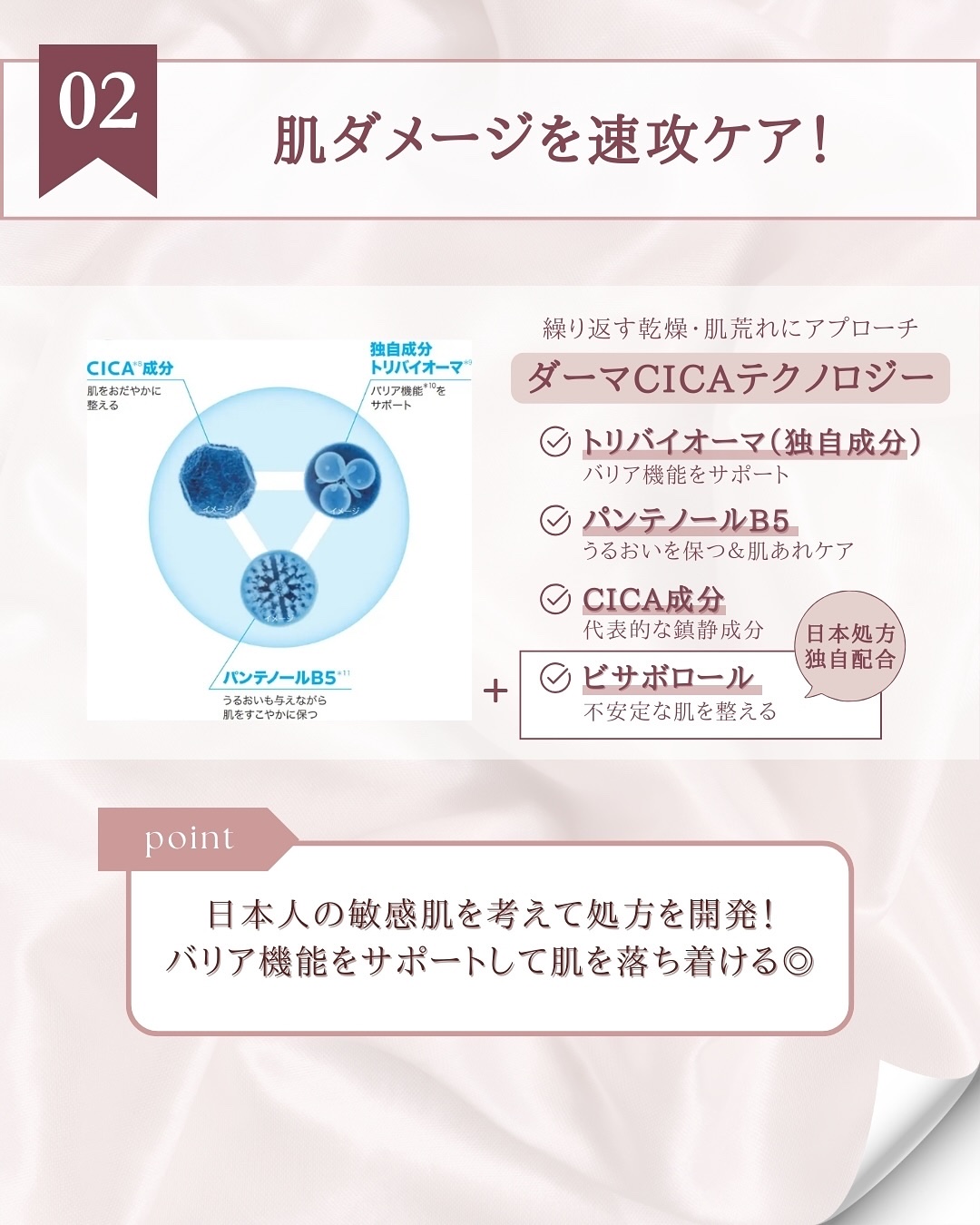 - 塗るだけSOSシールド うるおいの先、肌荒れ予防やダメージケア*1まで。 ①7種の肌悩み*2に。肌ダメージ*1を速攻ケア*3 ②独自のダーマCICAテクノロジー*4採用。 CICA成分*5、パンテノールB5*6、独自成分トリバイオーマ*7配合。 ③長時間*8見えない刺激*1から守るセカンドスキンシールド*9 *1 乾燥による *2カサつき、乾燥による肌荒れ防止、乾燥によるくすみ、キメの乱れ、乾燥ガサガサ肌への保湿、美容トリートメント後(肌管理後)、花粉などの飛散物汚れからの肌保護 *3 お手入れにより *4 ツボクサ葉エキス、α-グルカンオリゴサッカリド、ポリム二アソンチホリア根汁、乳酸桿菌、マンノース(全て整肌成分)、パンテノール(保湿・整肌成分) *5 ツボクサ葉エキス(整肌成分) *6 パンテノール(保湿・整肌成分) *7 α-グルカンオリゴサッカリド、ポリム二アソンチホリア根汁、乳酸桿菌、マンノース(全て整肌成分) *8 ラ ロッシュ ポゼ調べ。個人差があります。 *9 化粧膜