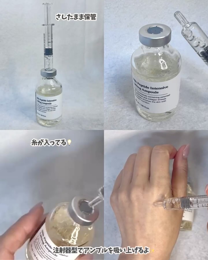 金色の糸が入った美容液なんて初めて見たSUNGBOONEDITOR成分エディターシルクペプチドインテンシブリフティングアンプル35ml注射器で吸い上げて使う珍しい形の美容液です。金色のコラーゲン糸が入っていて、潤いとハリが供給されるんだとか。...