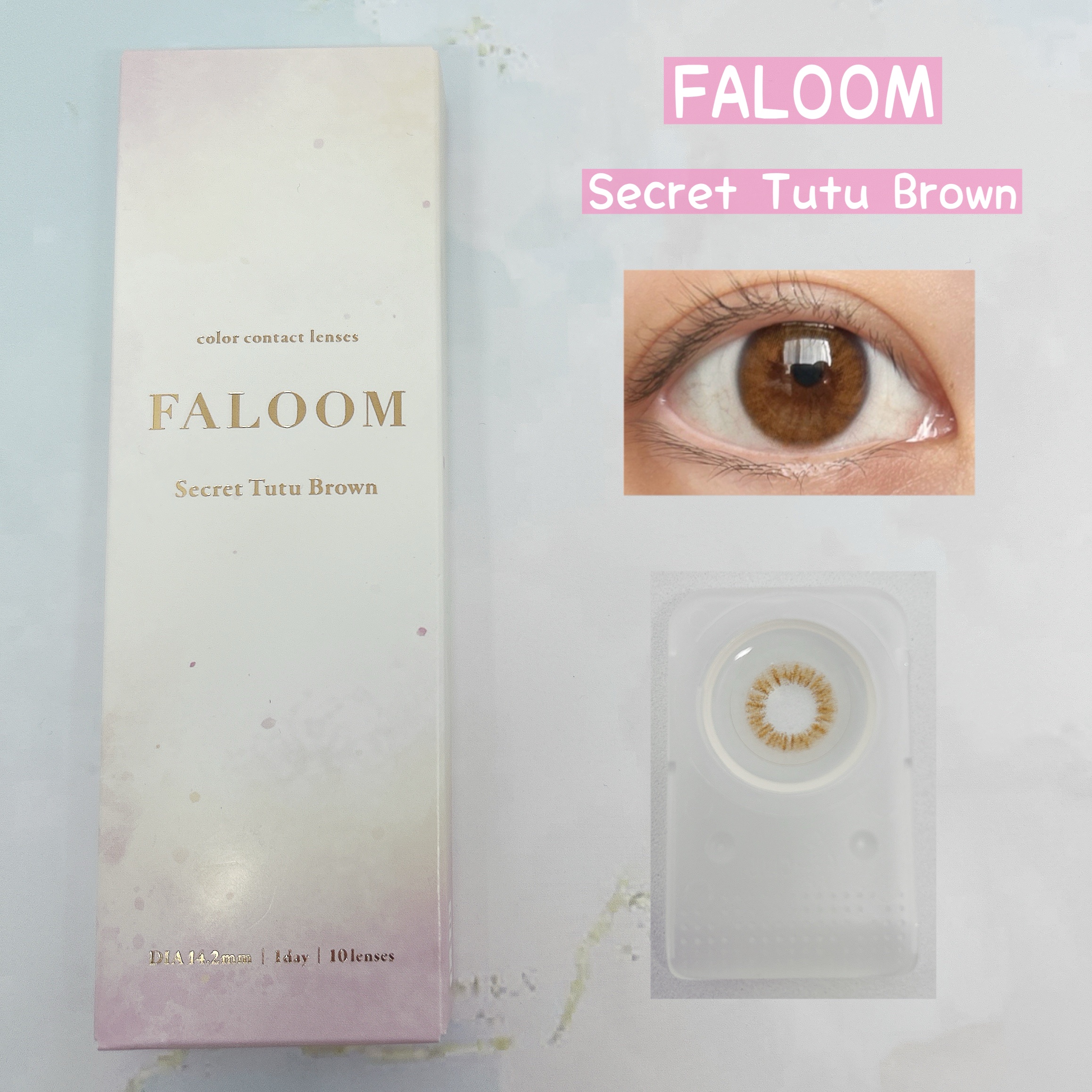 カラコンブランド「FALOOM(ファルーム)」✨ いろんなデザインのブラウンレンズがあってナチュラルに盛れるレンズから印象的な瞳になれるレンズまで幅広いデザインから選べるよ💕 新作は4種類🐻Brulee Brown 白っぽブラウン✕ふわっとフチ 裸眼風ニュアンスブラウンレンズ 1番お気に入り✨