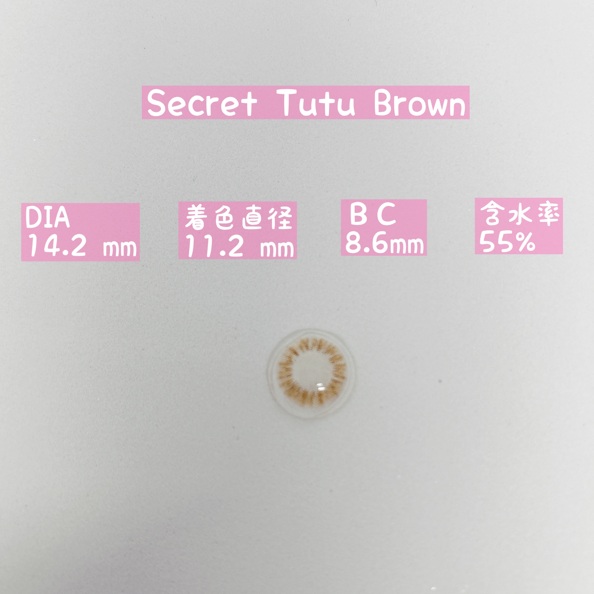 - ※2025年6月以降、商品パッケージ裏面・側面の一部表記を順次変更いたします。尚、これにかかる商品の交換・返品は承っておりません。 『わたしにハマる♡盛れ発色ブラウン』4色のカラーラインナップ ■ヒミツのちゅるんブラウン Secret Tutu Brown (シークレットチュチュブラウン) DIA:14.2mm 着色直径:11.2mm ニュアンスブラウンカラーが自然に瞳のトーンアップを演出してくれる裸眼風デート系レンズ。 ■はかなげ大人っぽブラウン Brulee Brown(ブリュレブラウン) DIA:14.5mm 着色直径:13.8mm トレンドの白っぽブラウン×ふわっとフチデザインで、大人っぽい瞳を演出。 ■甘っぽモテブラウン Whip Brown(ホイップブラウン) DIA:14.5mm 着色直径:13.8mm まろやかベージュブラウン×ぼかしフチデザインで、明るく優し気な瞳を演出。 ■あざとよくばりブラウン Smore Ring Brown(スモアリングブラウン) DIA:14.5mm 着色直径:13.8mm こなれアッシュブラウン×くっきり太フチデザインで、きゅるっと可愛らしい瞳を演出。 カラーコンタクトレンズの不適正使用による眼障害の危険性等などがあります。 ●コンタクトレンズは高度管理医療機器です。不十分な洗浄・消毒など不適切なケアや、長時間・交換期間を超えた装用により、アレルギー性結膜炎、角膜感染症、角膜潰瘍等の重篤な眼障害が発生する危険性があります ●ご使用前に取扱説明書を確認してください 使用上の留意事項 ●眼科医院等を受診してからお求めください ●眼に異常を感じたら直ちにレンズ使用を中止し、お近くの眼科等で診察を受けてください ●医師の指示にしたがってご使用ください ●コンタクトレンズを装用する場合、自覚症状がなくても、眼科医院等での定期検査を受けてください ●レンズに不具合がある場合は使用しないでください