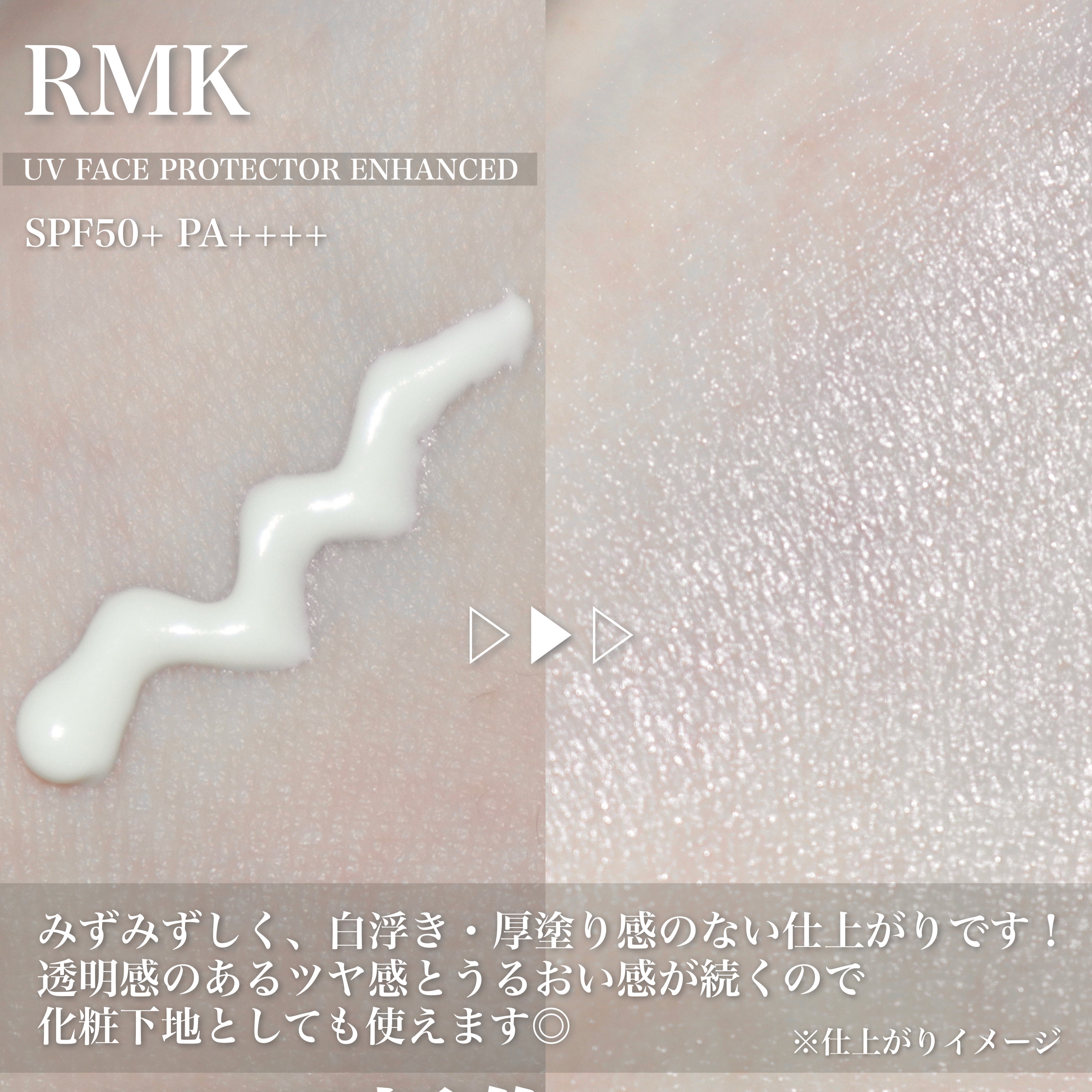 日中の肌を守りながらうるおいに満ちた透明感を手に入れる✨ RMKの新作UVがめちゃくちゃ良かった🫶🏻🫶🏻 ナチュラルな仕上がりがポイント! ベースメイクの仕上がりを邪魔しない薄膜感処方がお気に入りです✨ 水や汗、こすれに強く落ちにくいところも魅力。 しかも、微細パール配合なのでツヤ感が出て、冬でも肌がふっくらうるおっているように見える✨