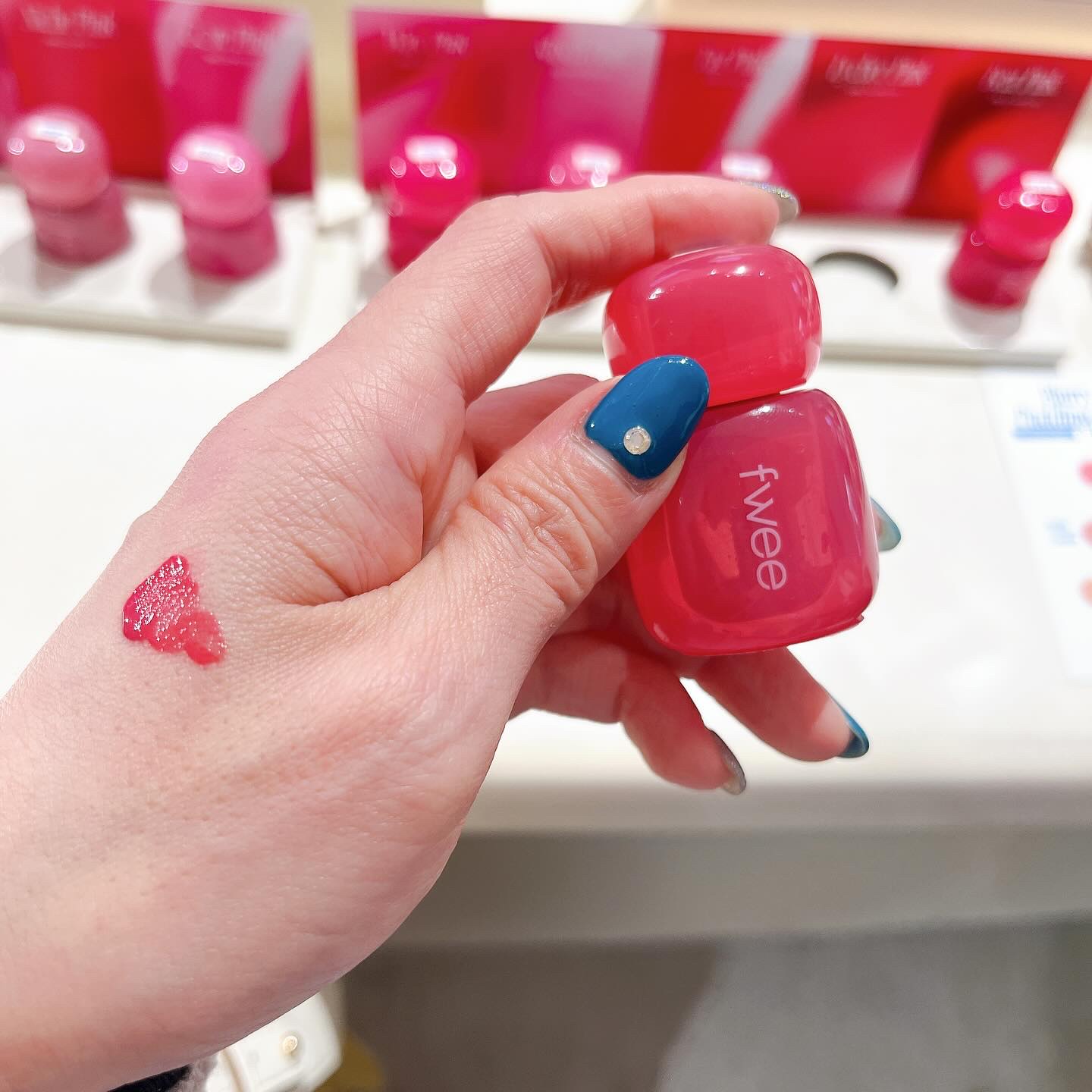 fweeの新商品ピンクオブセッションステイフィットティントがついに日本上陸📣 なんとカラー展開はピンクだけで20色展開🎀 私が今回使用したのはG09ライチピンクとM06ベイピンクですがどちらも絶妙な色味でかわいい🫰 軽いテクスチャーで着け心地がよく色持ちも発色も🙆♀️♥ フィーアジト東京で購入できるよ🛒