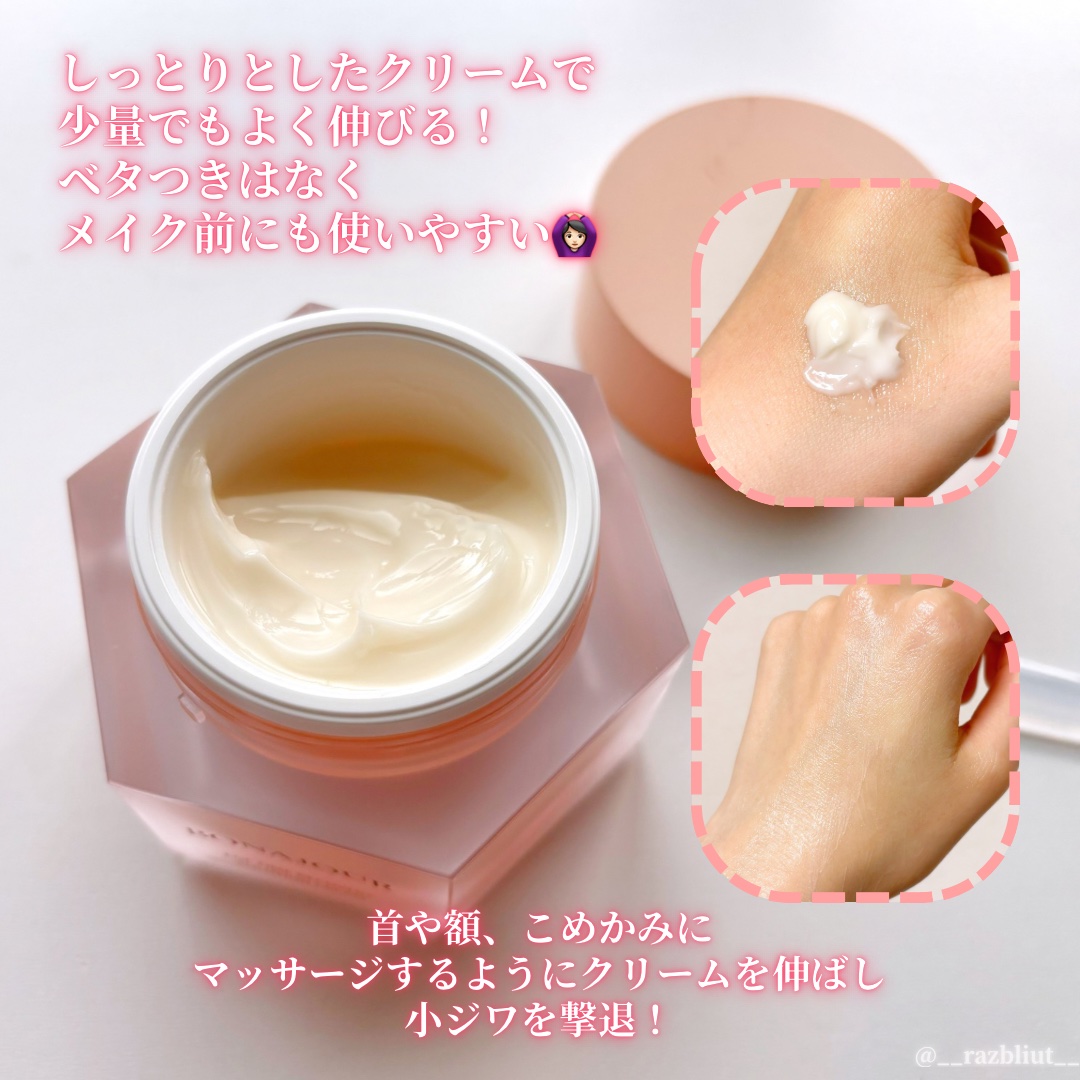 | テクスチャーはふわっとしたクリームで肌に馴染みやすくベタつきはなし 本当に使いやすいクリームです✨ | 詳細を見る | ||