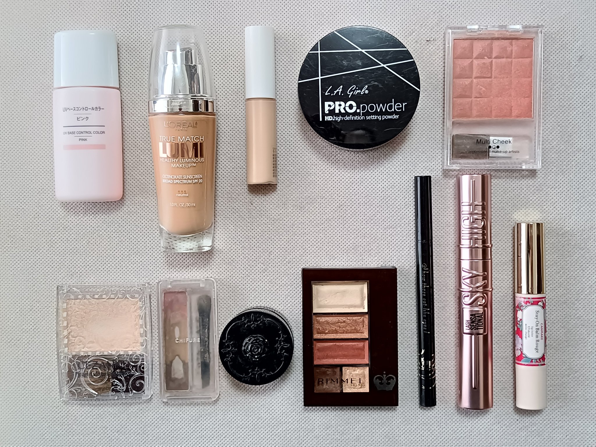 アリィー ニュアンスチェンジUV ジェル RSを、顔全体にまんべんなく塗ります。 RMK RMK ジェルクリーミィファンデーション 103を、顔全体にまんべんなく塗ります。 ジョンソンベビー ジョンソン ベビーパウダーを、顔全体にまんべんなく軽くはたきます。 THE BODY SHOP bronze shade warm glowを、両頬に塗ります。 KATE リフレクトミラーアイズ BR-1の締め色を、眉毛全体にまんべんなく塗ります。 URGLAM UR GLAMBLOOMING EYE COLOR PALETTE 01を、使用しました。 ちふれ リキッド アイライナー 筆ペンタイプ BK30 ブラックを、塗ります。 CEZANNE エアリーカールマスカラを、まつ毛全体にまんべんなく塗ります。 MAYBELLINE NEW YORK コロッサルボリュームエクスプレスを、まつ毛全体にまんべんなく塗ります。 MAYBELLINE NEW YORK SPステイ マットインク 135を、唇全体にまんべんなく塗ります。