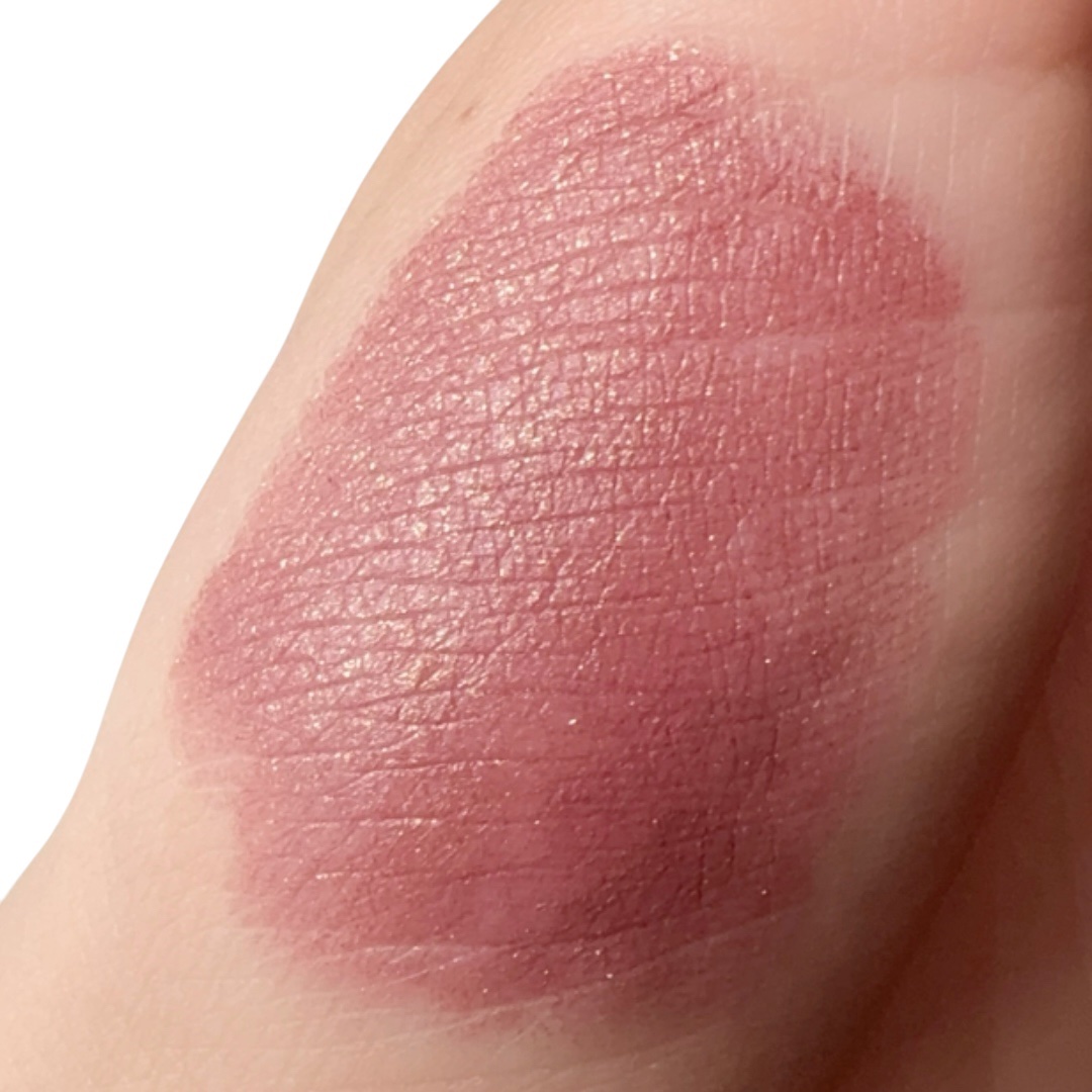 塗りやすさと美しさを両立したスリムなデザイン マットリップだけど乾燥しづらくスルスル塗れる!! メタリックなラメ入りトープピンク 馴染みがよくて元の唇の色と似てる、、ややくすみあり