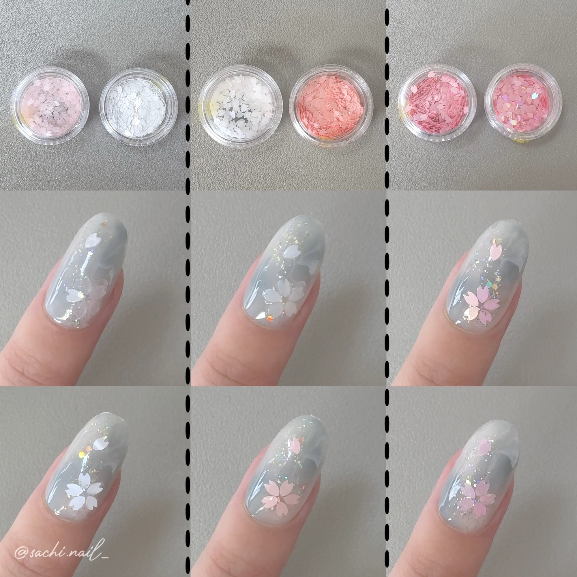 昨年ダイソーで発売されてめっっちゃめちゃ話題になってた桜のホログラムが、今年はセリアで買える!!!! 透け感のあるピンクやホワイトは本当にリアルな桜の花びらみたいだしオーロラピンクも綺麗だし 春の桜ネイルもりもりやっていきたい方は是非買いましょう💯🫶