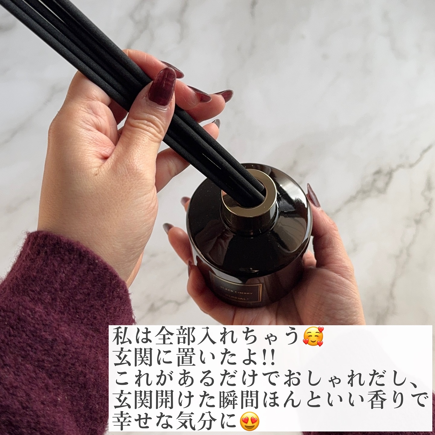 シックなデザインがオシャレでどんなインテリアでも馴染むのが良い✨ 私は寝室のベッドサイドに置いて、甘い香りに癒されています🍒 香りの種類も多いからいつもシャンプーどれにしようか迷っちゃうけど😆 ディフューザーも香りの種類豊富だから、お部屋の雰囲気に合わせてお気に入りを見つけるのが楽しくなりそう💖 ブラックチェリー🍒の香りはフレッシュジューシーの中に甘さを感じられる香りで寝室やリビングにも良さそう♡♡♡