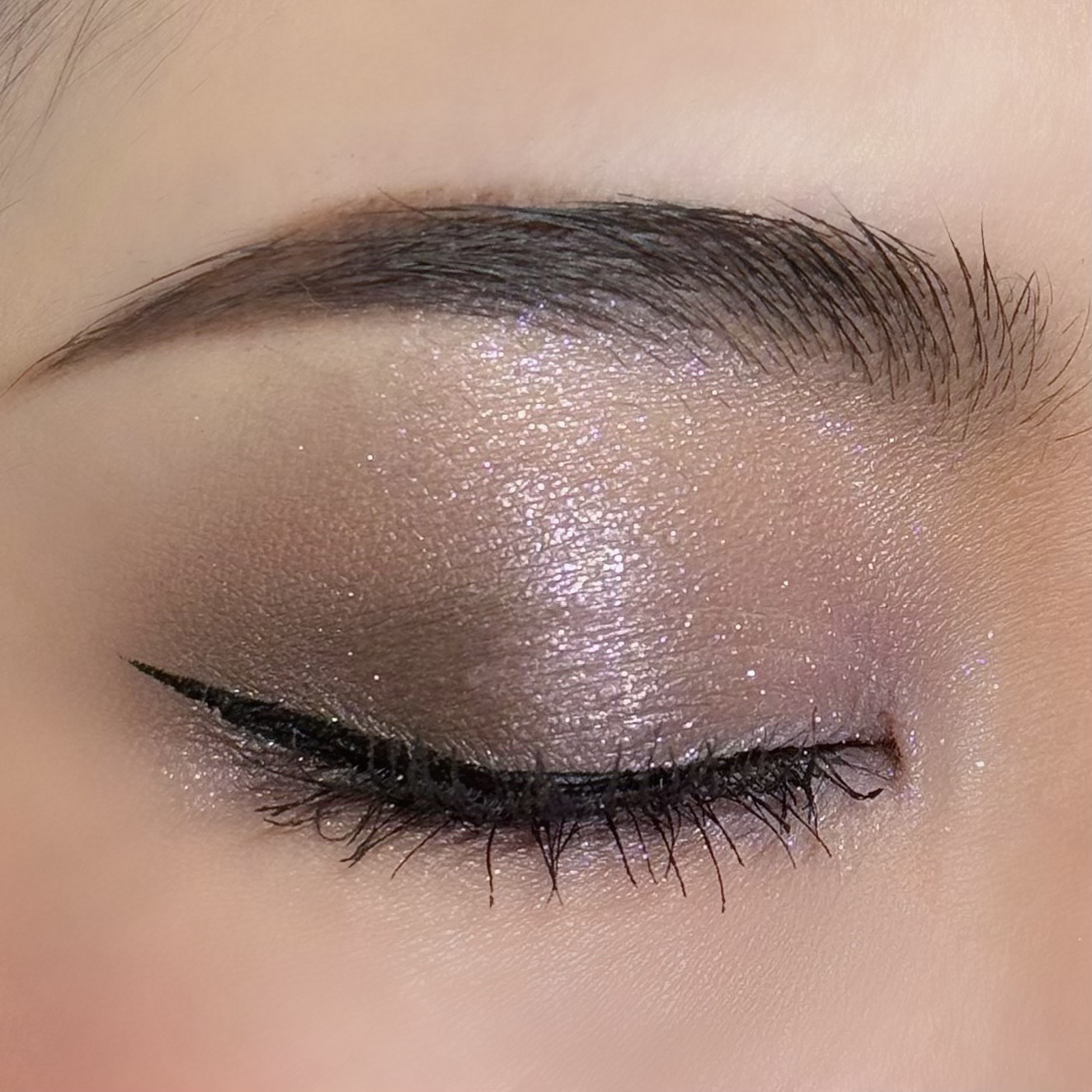 色味は青みよりのラベンダーカラーで青みが得意なブルベの方におすすめです。 粉質はしっとりしていて発色も良いのでグラデーションしやすく使いやすいアイシャドウパレットです。 ラメも入っていてラメ飛びしにくく使いやすいです。