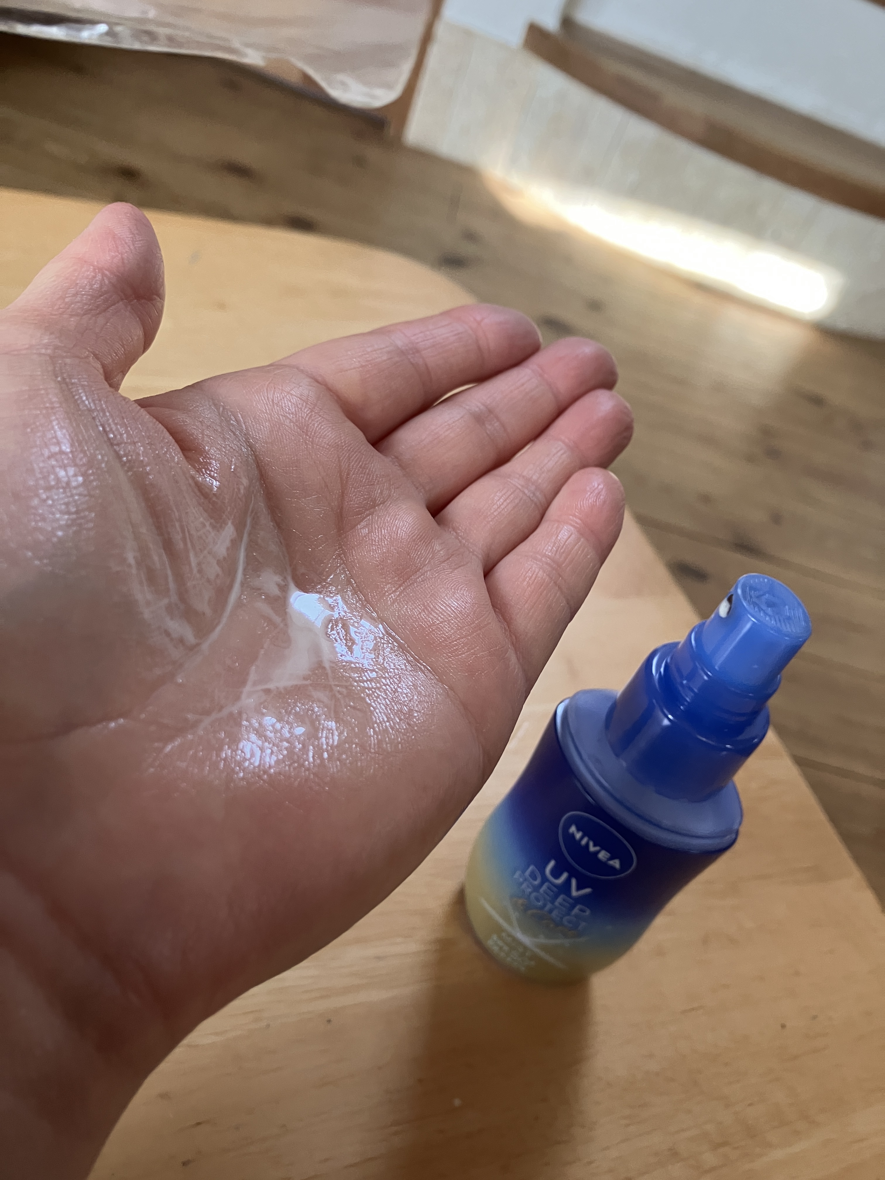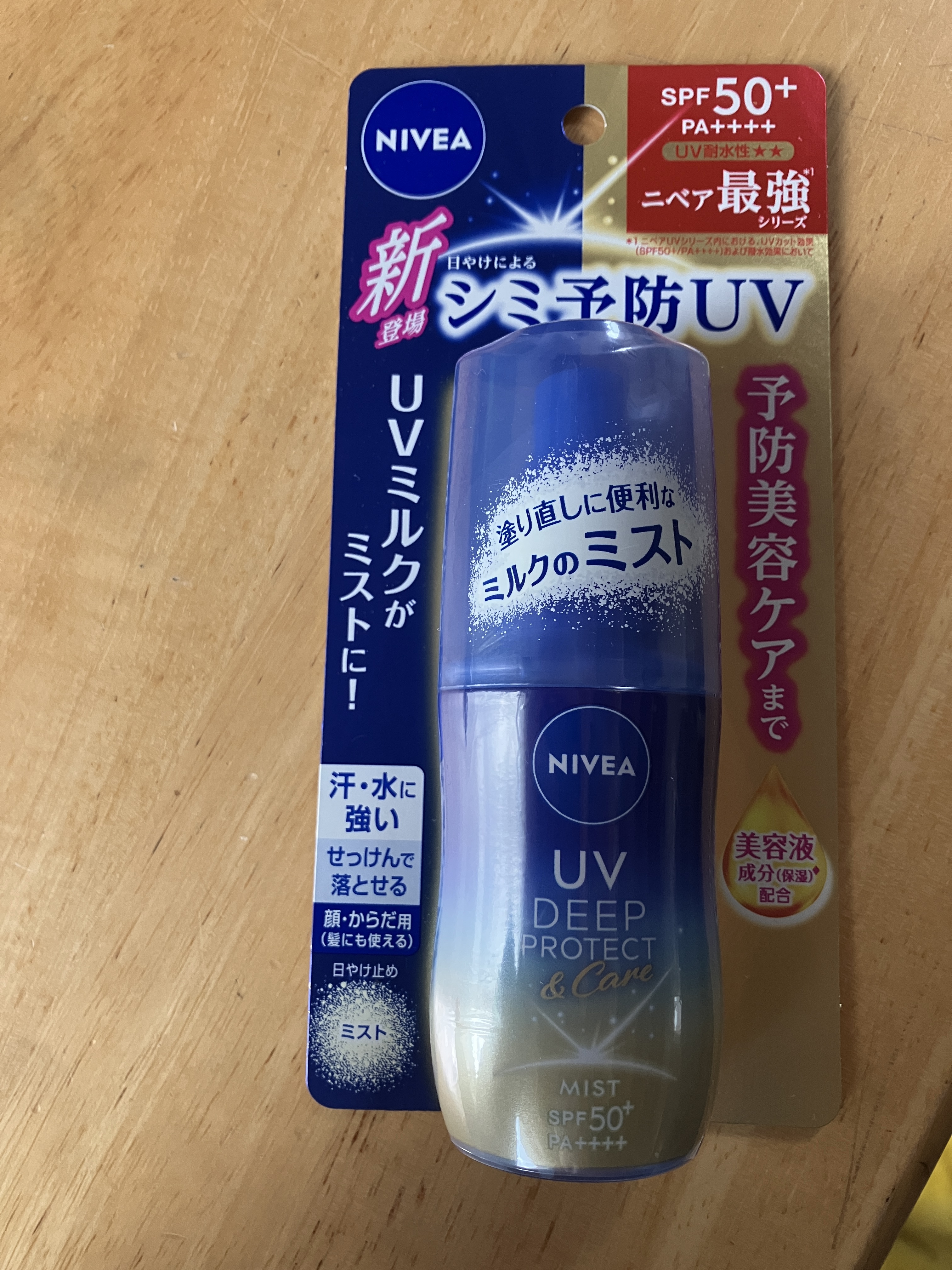 シミケアは年中しています。 これ以上シミが増えないように予防をするようにしています。 こちらのディーププロテクト&ケア ミルクミストは顔にも、カラダにも髪にも塗れちゃうすぐれもの。 ベタつきもなく、乾燥もなく使えちゃいますよ。 優秀な日焼け止めです😊