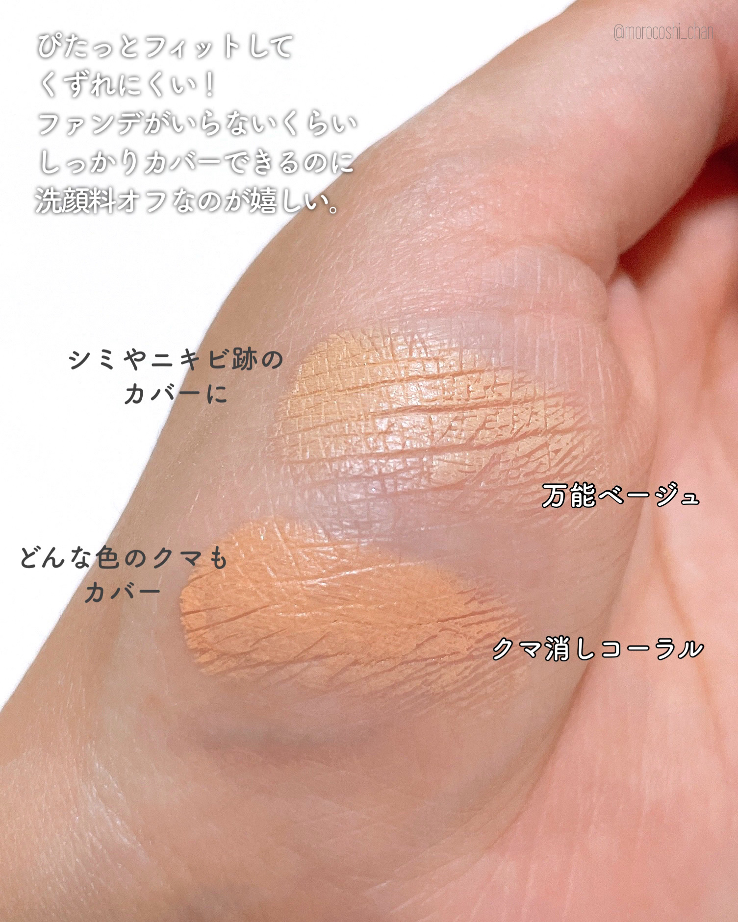 美肌ジェリーコート処方とは…ネット構造のジェリーが肌を包み込み、カバーしながらツヤ肌を演出。 ぷにぷにで肉球のようなテクスチャーです🐾つけ心地は気持ち良いのですが、伸びはあまりよくない気がしました。 仕上がりはかなり好印象!頬や鼻下の赤みが悩みですが色ムラをカバーして、つるん!とした肌に見せてくれます。 がっつりカバー!という感じではなく、素肌のようなツヤ感を出してくれるので透明感のあるすっぴん美肌風になれます✨ 密着力が高いのにつけ心地は重くなく、スキンケアの続きのような使用感です👑 このつけ心地・仕上がりでUVカット効果しっかり+洗顔料でオフできるのが驚きです…!!