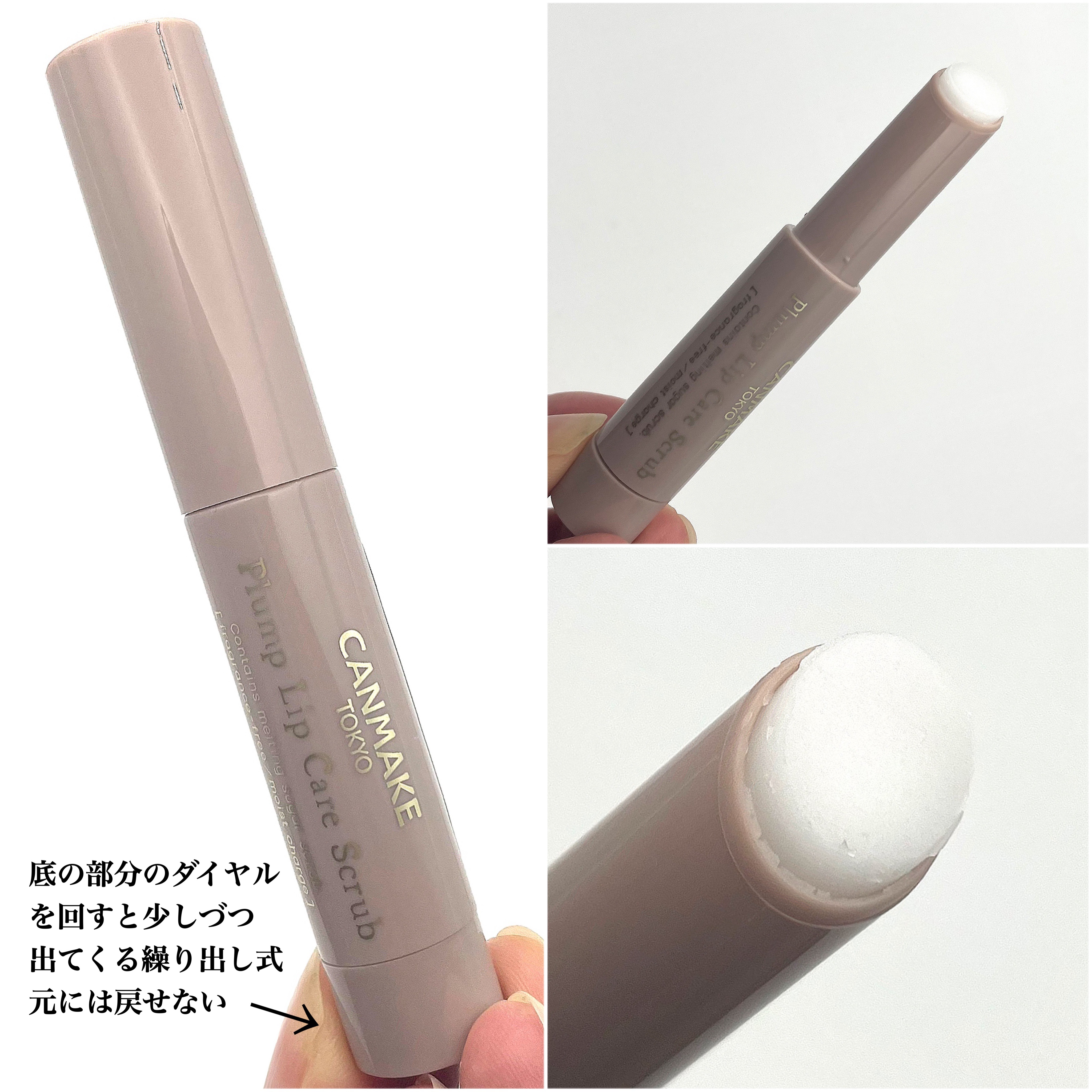 キャンメイクプランプリップケアスクラブ01クリア¥594(税込)[良かった点]・手軽にスクラブできる・保湿力が高い・拭き取り、洗い流し不要・無香料[微妙な点]・一度出したら戻せない〜感想〜保湿力がしっかりありとても良いです!スクラブも小さめで...