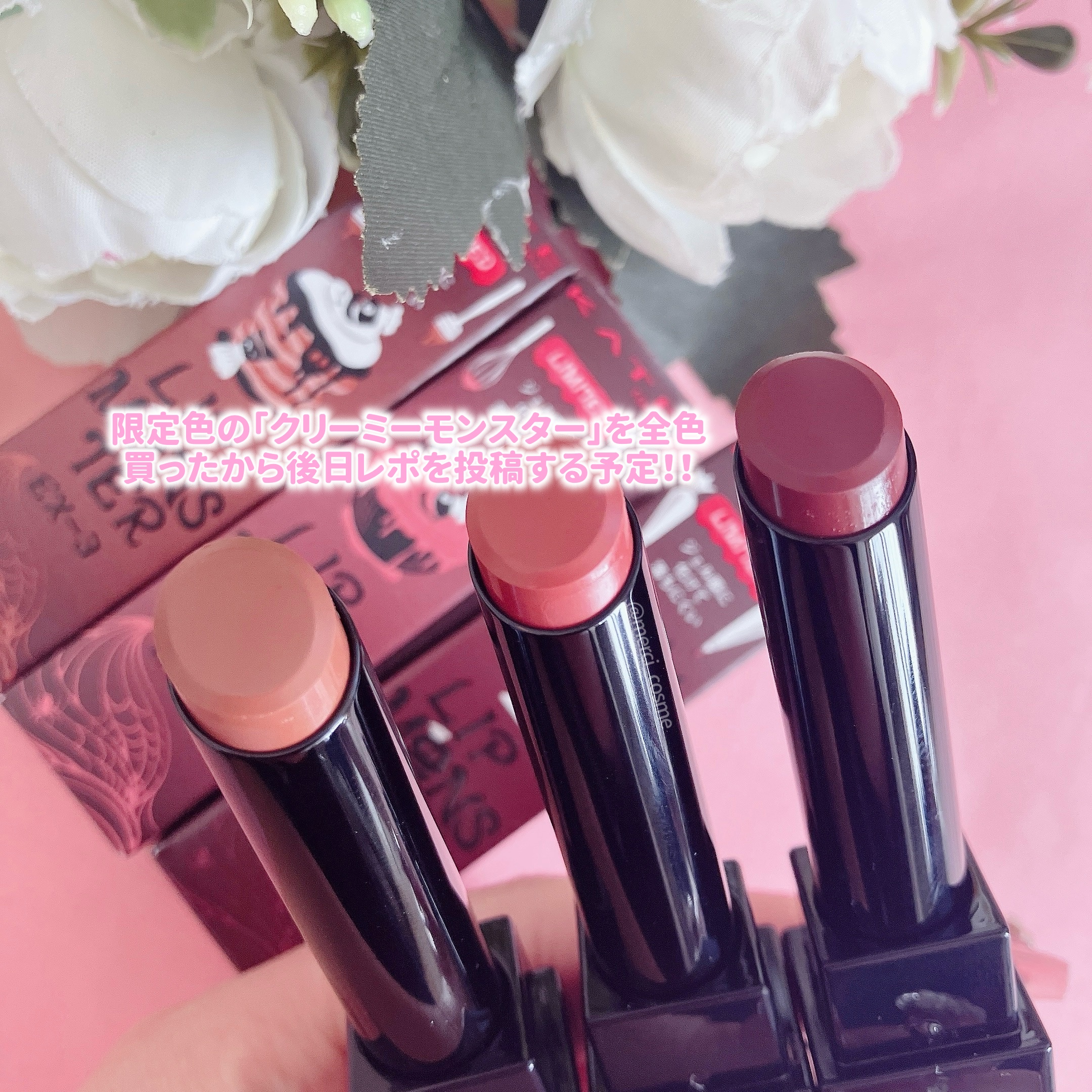 - 落ちにくさも美発色もよくばりたい、つけたての色が長時間持続する人気の口紅リップモンスター。 唇から蒸発する水分を活用して密着ジェル膜に変化する独自技術※で、つけたての色が長時間持続。 高発色&保湿。 ※当社独自の色持ち技術 ■花火のようにまぶしくきらめく 繊細なラメが際立つ限定色 EX-6 ピンクカラー×青ラメ【ロケット花火流星群】 EX-7 オレンジカラー×黄&緑ラメ【100万発の線香花火】 EX-8 レッドカラー×緑ラメ【打ち上げ花火ブランコ】 ■深みレッド系カラーの限定色 EX-9 戦慄の喜笑 (限定色) EX-10 狂気の怒号 (限定色) 【2025クリスマスコフレ】 落ちにくいリップモンスターから、唇の血色感を底上げする ホリデーシーズン限定の熱感ニュアンスベージュ系カラー登場。 EX-11 紅煙宿る贈り物(限定色):ボルドーベージュ系 EX-12 盗まれた1224mの星光(限定色):キャメルベージュ系