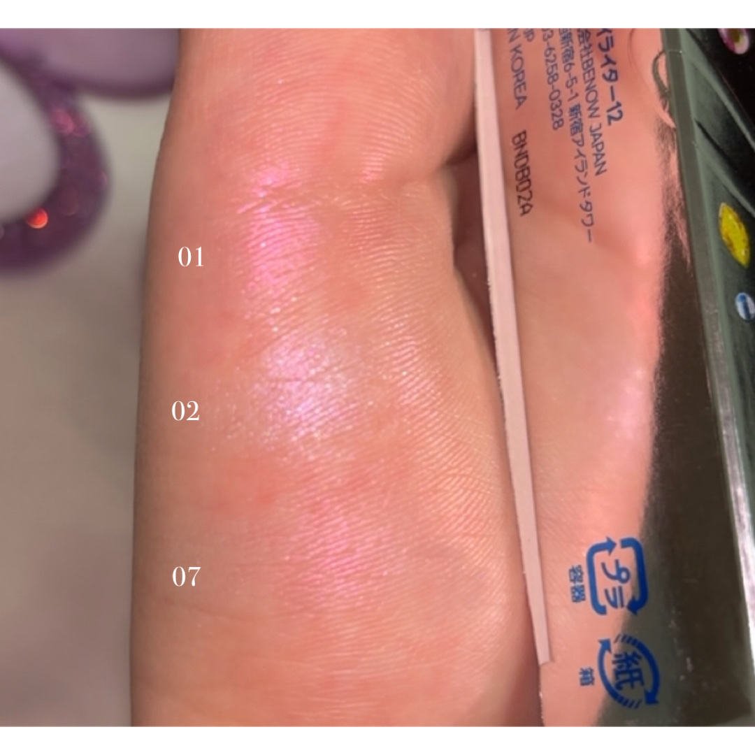 誕生日ハイライト💎🤍 早速レビューしていきたいと思います🪄︎︎✨ 01はブラシを使えばチークとしても使えそうなピンクカラー💓 一見濃すぎるピンクに見えますが肌に載せると馴染む😳 02はラベンダーパールがびっしり詰まったハイライトでとにかくツヤを出したい方におすすめ🙌🏻