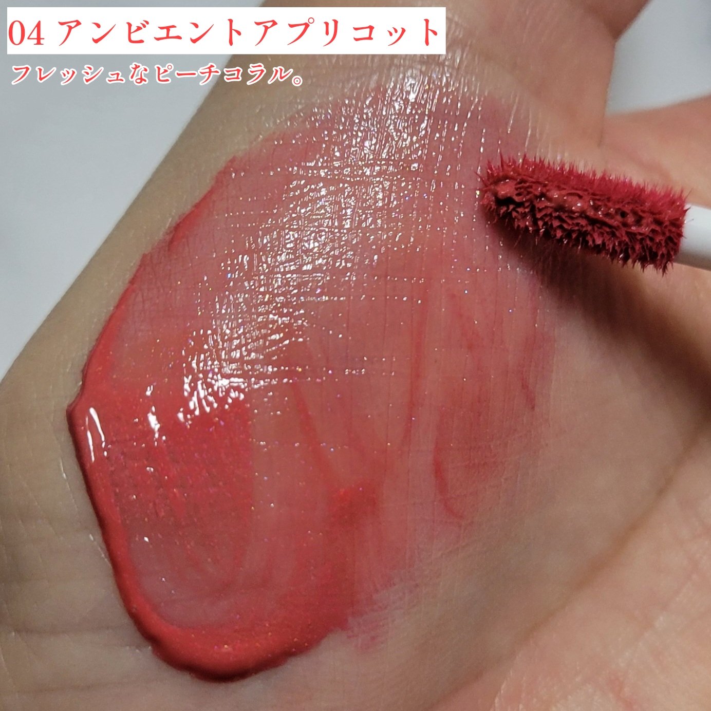 塗布して1分ほど上下の唇を合わせずにいると、パールが浮き出てくる!!というめちゃくちゃ新感覚なリップです💕 01 ホワイトパラダイス パールがとにかく綺麗なホワイトカラー!めちゃくちゃ上品な印象になれます🥰 04アンビエントアプリコット 春らしいコーラルカラーが可愛いめちゃくちゃ明るいピンクカラー!
